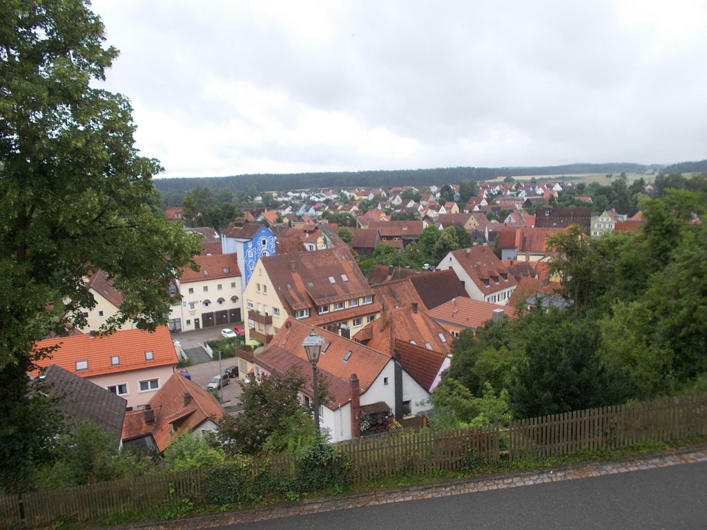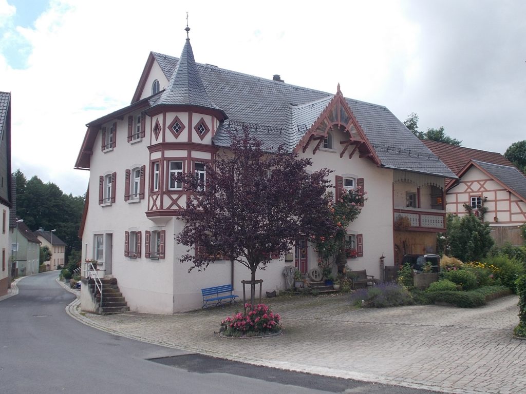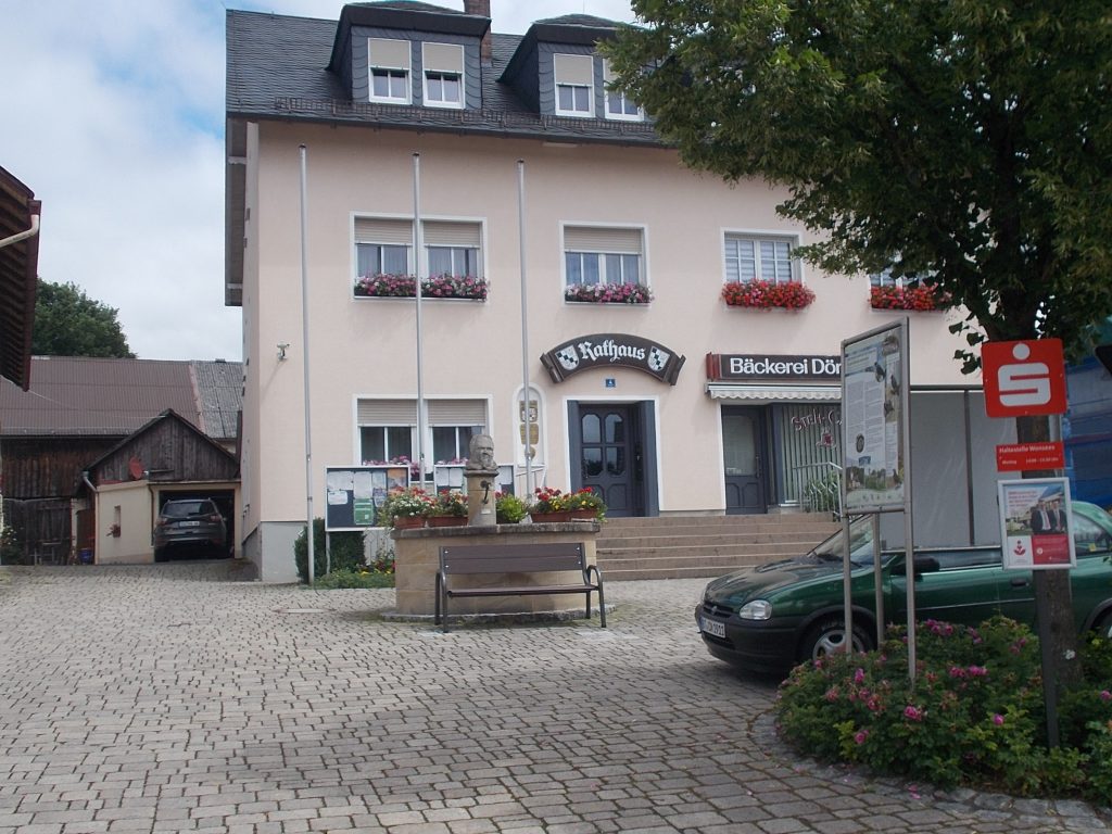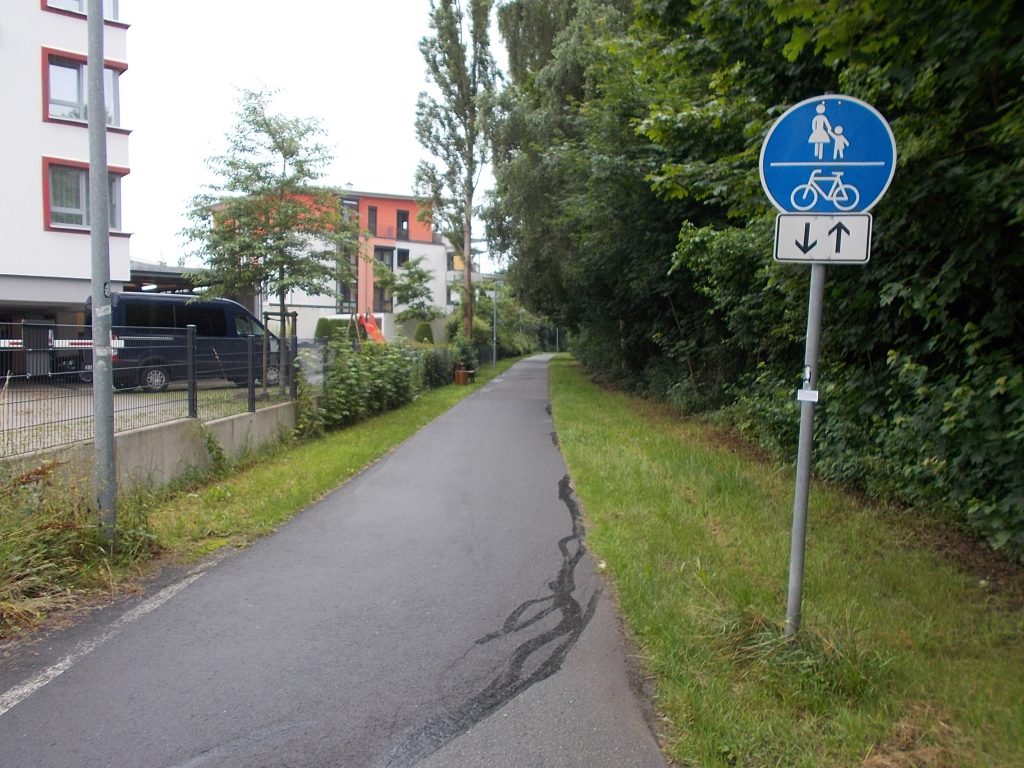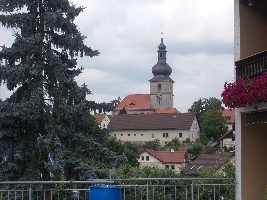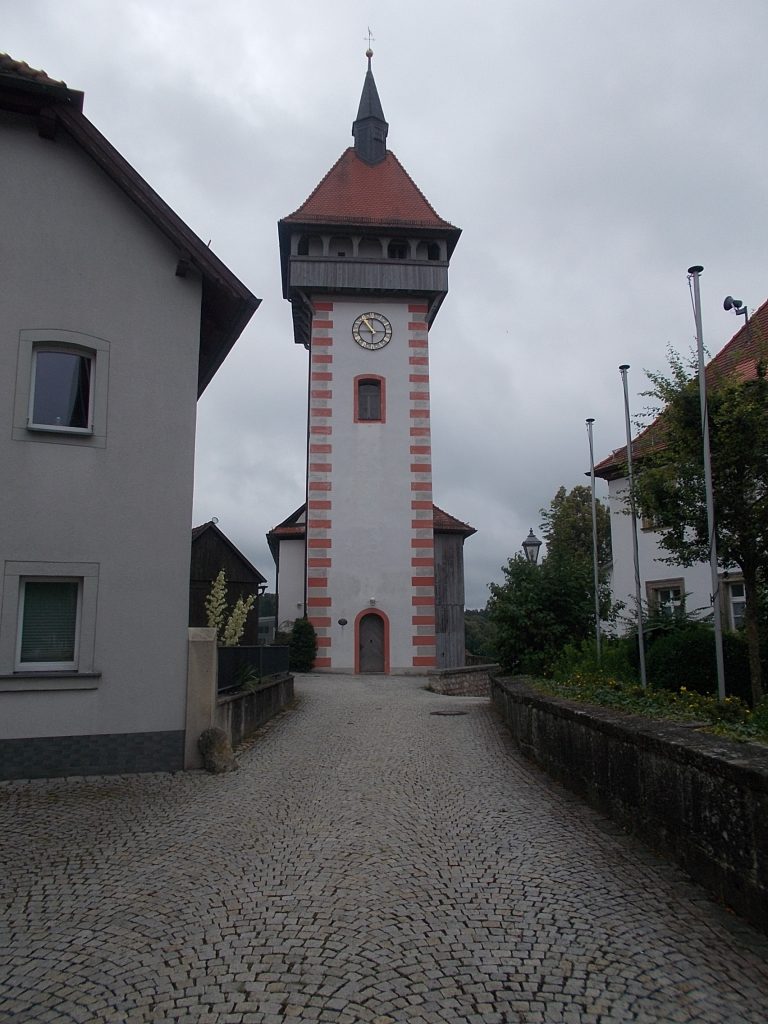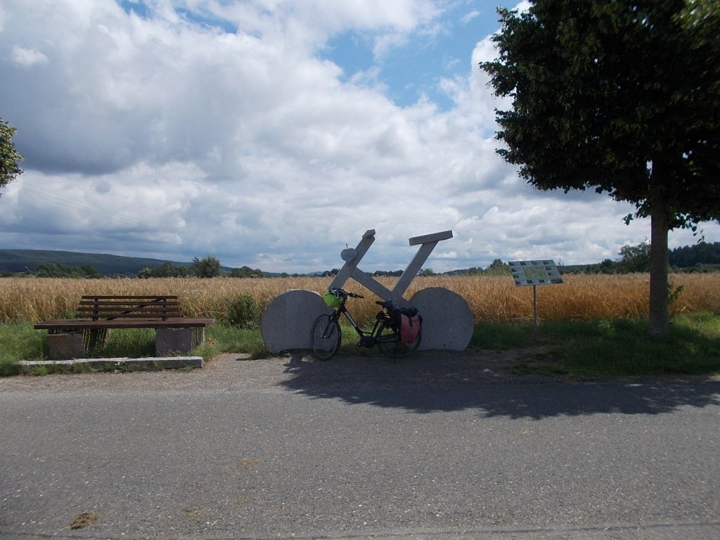 1. Tag: Bahnanreise nach Selb. Radtour Selb – Wunsiedel-Schönbrunn. 35 Tages-km. Mit dem Wetter hatte ich großes Glück: Lediglich an einem Vormittag (3. Tag) gab’s leichten Regen. Selb – Porzellanstadt.Renaturierung des Selbbaches, aber nur soweit sichtbar. Selbbachtal.Und was gibt’s heute? …… Bahntrassenradeln (zwischen Selb und Wunsiedel-Holenbrunn)! Die Kilometrierung beginnt in Hof Hbf und endet in Marktredwitz. Die alte Bahntrasse folgt zunächst dem Lauf des Selbbachs. Sie wird immer wieder unterbrochen durch die Autobahn A 93. Ich musste nur wieder den Zugang zur Trasse finden. Rechts neben dem Weg fließt die Eger.Am Bahnhofsplatz von Schwarzenhammer ist das hölzerne Bahnhofsgebäude schon 1986 bei Streckenstilllegung abgerissen worden. Auf einer Infotafel ist zu lesen, dass man damals von Paris bis hierher mit der Bahn reisen konnte.Blick auf Thierstein mit Kirche und Burg.Ab und zu geht es auch ‚mal bergauf.Hier am Bahnhof Wunsiedel-Holenbrunn endet der bisherige Bahnradweg. Hier verkehren Züge zwischen Hof und Marktredwitz. Auf der anderen Seite der Bahnlinie beginnt eine weitere, stillgelegte Bahntrasse …… und zwar nach Leupoldsdorf. Hier die Auffahrt zur Bahntrasse.Nun war es nicht mehr weit bis zum Hotel in Wunsiedel-Schönbrunn. Draußen sitzen bei einem kühlen Radler, Tourentagebuch schreiben, während der Pedelec-Akku an der öffentlichen Ladestation aufgeladen wird. 2. Tag: Radtour von WUN-Schönbrunn nach Bayreuth. 53 Tages-km. Die Brücke über die Rösla verheißt die Fortsetzung des Bahntrassenradelns nach Leupoldsdorf.Auch hier sind einzelne Bahnkilometer-Steine anzutreffen. 7,6 km seit Bhf WUN-Holenbrunn. Die Gesamtstrecke ist nur 10,5 km lang. Die evang. Christuskirche von Tröstau liegt außerhalb des Dorfes.Auf den letzten Kilometern der Bahntrasse ist diese unbefestigt. Nachdem es heute Morgen schon geregnet hat, ist der sandige Weg weich geworden. Diese „Drängelgitter“ gehören irgendwie zum Bahntrassenradeln dazu. Es wäre ohne diese einfach zu schön. Ende der Bahntrasse in Leupoldsdorf. Der Kilometerstein entspricht nicht der Tatsache. Ein Stück Gleis mit Güterwagen darauf als Erinnerung daran, dass hier einmal Züge verkehrten.Das „Hammerschloss“ aus dem 17. Jh. in Leupoldsdorf. „Hammer“ = Eisenhammer = Eisenverarbeitung.Ortschaft Meierhof. Ab jetzt geht’s heftig bergauf auf unbefestigten Waldwegen.Am Wegesrand.Die erste Anhöhe, der Rudolfsattel (Rudolfstein 866 müNN) ist geschafft. Zum Verschnaufen geht’s auch ‚mal bergab.Auch die zweite Anhöhe ist geschafft: 853 müNN. Endlich wieder Asphalt und nachhaltig (10 %) bergab.Schneller Fotohalt: Nordabfahrt – Schanze am Ochsenkopf (1.024 müNN).Bischofsgrün.Bischofsgrün.Jetzt lerne ich auch einmal den Weißen Main kennen.Und was kommt dann? Bahntrassenradeln von Bischofsgrün nach Bad Berneck.Immer schön am Weißen Main entlang. In Bad Bernau hat der Weiße Main Verstärkung durch die Olschnitz erhalten und ist ganz schön groß geworden.Benk, Markgrafenkirche St. Walburga.Bindlach, St. Bartholomäuskirche. Jetzt ist es nicht mehr weit bis zum Hotel in Bayreuth.3. Tag: Zweimal Bahntassenradeln ab/bis Bayreuth. 83 Tageskilometer. Die 1. Trasse führt ab Stadtrand nach Hollfeld.Im leichten Regen durchs Truppachtal.Vor Obernsees die St. Rupert-Kapelle.Truppach, Schloss Truppach mit angrenzender Landwirtschaft.Gut versteckt: Schloss Plankenfels.Höhenburg in Wadendorf. Die Burg Wadendorf wurde 1453 erstmals urkundlich erwähnt und liegt auf einem Hügel in unmittelbarer Nähe zum Fluss Wiesent. Südliche Ringmauer mit zwei Rundtürmen, zweigeschoss. Hauptgebäude sowie Reste der Toranlage bilden die Höhenburg. Bei Stechendorf.Das historische Rathaus der Stadt Hollfeld. Trotz „Ruhetag“ darf ich die Außensteckdose dazu nutzen, den Pedelec-Akku nachzuladen. Gleich rechts neben dem Rathaus das „Wittauer Haus“, heute Musikschule. Die Familie Wittauer ist 1926 nach Amerika ausgewandert.Marienplatz.Die ehemalige Kirche St. Gangolf, heute Kulturzentrum.Blick auf die Stadt Hollfeld.Das Obere Tor.Pfarrkirche St. Mariä Himmelfahrt.Innenansicht.Auf dem Weg zur nächsten Bahntrasse muss ein Höhenzug überwunden werden. Dieses schöne Fachwerkhaus steht in Krögelstein.In Wonsees Mittagspause im Café am Marktplatz.Wonsees.Im Ortsteil Sanspareil Burg Zwernetz, staufische Burganlage um 1200. Ebenfalls in Sanspareil: „Morgenländischer Bau“, 1746-1747 erbaut, ein Schlösschen mit rückwärtigem Wohntrakt, nicht einsehbar. Das war der Küchenbau des Schlösschens, heute Café. Dazwischen kleine Parkanlage. Nach rasanter Talfahrt Ankunft am Marktbrunnen in Thurnau.Schloss Thurnau (Hotel).Schloss Thurnau, Seeseite.Es ist inzwischen heiß geworden. Wohltuender Schatten über der 2. Bahntrasse des Tages. Die ehemalige Bahntrasse ist hier Teil des Main-Radwegs.Auf der Brücke über den Roten Main bei Altdrossenfeld.Markgrafenkirche und … … Schloss Neudrossenfeld, ehemaliges Rittergut, seit 1993 öffentiche (Standesamt) und private (Restaurant) Nutzung. Auf dem Main-Radweg zurück zum Hotel in Bayreuth. 4. und letzter Tag: Bahntransfer Bayreuth – Wiesau, Radtour Wiesau – Tirschenreuth – Bärnau – Plößberg – Weiden(Oberpfalz) Bhf. Bahnheimreise. 67 Tageskilometer. – Wieder Bahntrassenradeln, und zwar auf dem Vizinalbahn-Radweg Wiesau – Bärnau. Im Gebiet der Gemeinden Wiesau, Tirschenreuth und Bärnau asphaltiert, ansonsten wassergebunden. Der morgendliche Regenschauer hat mit Verlassen des Zuges aufgehört. Kurz vor Bärnau wird sogar die Sonne heraus kommen. Der Schilderwald zeigt u.a. an, dass ich ab hier auch auf dem Waldnaabtal-Radweg unterwegs bin. Die Waldnaab entspringt südöstlich von Tirschenreuth … … und durchfließt das „Land der tausend Teiche“. Es sind sogar mehr als 2.500 Teiche. In Neustadt an der Waldnaab (NEW) werde ich der Waldnaab wieder begegnen.Die „Himmelsleiter“, 2012 errichtet, 95 Stufen nach oben, und …… es