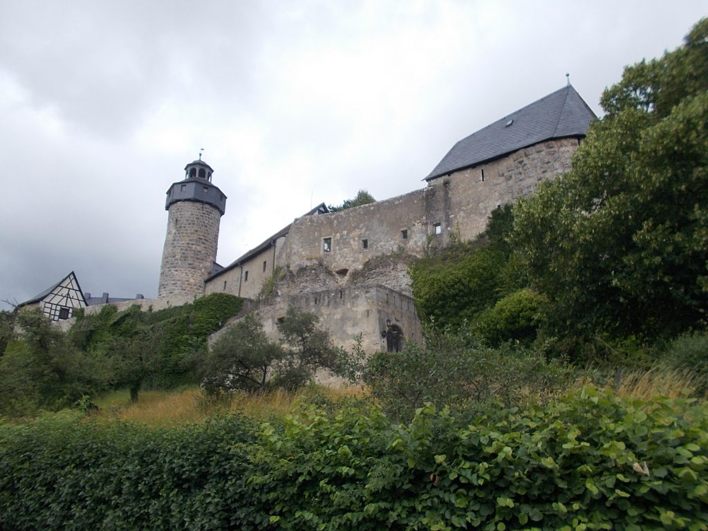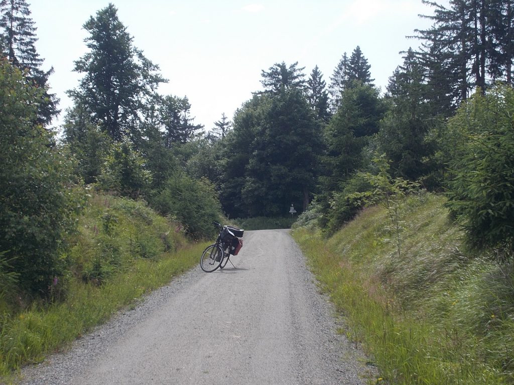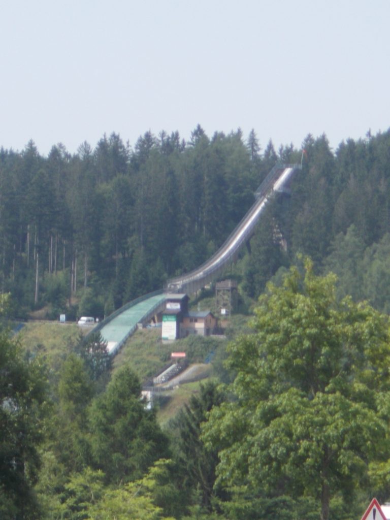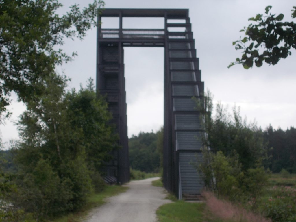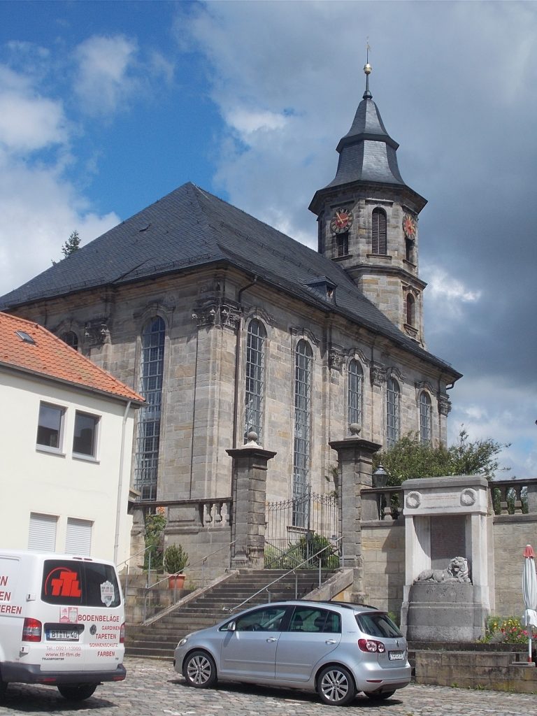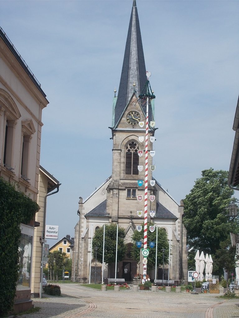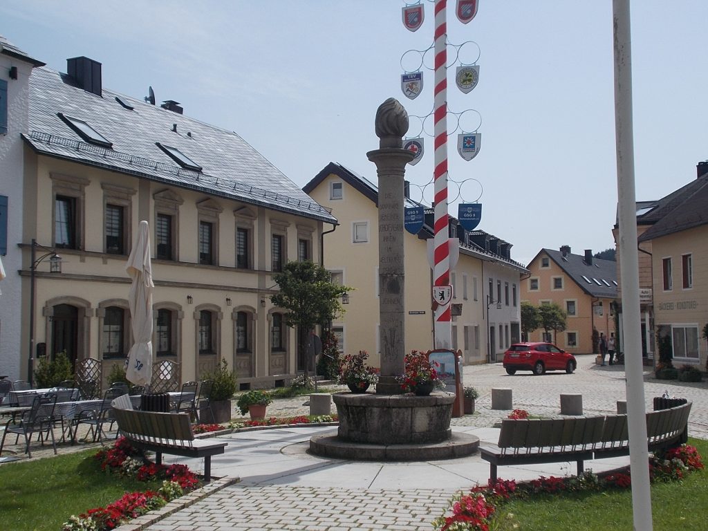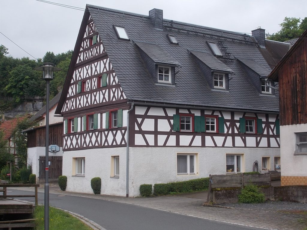1. Tag: Bahnanreise nach Selb. Radtour Selb – Wunsiedel-Schönbrunn. 35 Tages-km. Mit dem Wetter hatte ich großes Glück: Lediglich an einem Vormittag (3. Tag) gab’s leichten Regen. Selb – Porzellanstadt.Renaturierung des Selbbaches, aber nur soweit sichtbar. Selbbachtal.Und was gibt’s heute? …… Bahntrassenradeln (zwischen Selb und Wunsiedel-Holenbrunn)! Die Kilometrierung beginnt in Hof Hbf und endet in Marktredwitz. Die alte Bahntrasse folgt zunächst dem Lauf des Selbbachs. Sie wird immer wieder unterbrochen durch die Autobahn A 93. Ich musste nur wieder den Zugang zur Trasse finden. Rechts neben dem Weg fließt die Eger.Am Bahnhofsplatz von Schwarzenhammer ist das hölzerne Bahnhofsgebäude schon 1986 bei Streckenstilllegung abgerissen worden. Auf einer Infotafel ist zu lesen, dass man damals von Paris bis hierher mit der Bahn reisen konnte.Blick auf Thierstein mit Kirche und Burg.Ab und zu geht es auch ‚mal bergauf.Hier am Bahnhof Wunsiedel-Holenbrunn endet der bisherige Bahnradweg. Hier verkehren Züge zwischen Hof und Marktredwitz. Auf der anderen Seite der Bahnlinie beginnt eine weitere, stillgelegte Bahntrasse …… und zwar nach Leupoldsdorf. Hier die Auffahrt zur Bahntrasse.Nun war es nicht mehr weit bis zum Hotel in Wunsiedel-Schönbrunn. Draußen sitzen bei einem kühlen Radler, Tourentagebuch schreiben, während der Pedelec-Akku an der öffentlichen Ladestation aufgeladen wird. 2. Tag: Radtour von WUN-Schönbrunn nach Bayreuth. 53 Tages-km. Die Brücke über die Rösla verheißt die Fortsetzung des Bahntrassenradelns nach Leupoldsdorf.Auch hier sind einzelne Bahnkilometer-Steine anzutreffen. 7,6 km seit Bhf WUN-Holenbrunn. Die Gesamtstrecke ist nur 10,5 km lang. Die evang. Christuskirche von Tröstau liegt außerhalb des Dorfes.Auf den letzten Kilometern der Bahntrasse ist diese unbefestigt. Nachdem es heute Morgen schon geregnet hat, ist der sandige Weg weich geworden. Diese „Drängelgitter“ gehören irgendwie zum Bahntrassenradeln dazu. Es wäre ohne diese einfach zu schön. Ende der Bahntrasse in Leupoldsdorf. Der Kilometerstein entspricht nicht der Tatsache. Ein Stück Gleis mit Güterwagen darauf als Erinnerung daran, dass hier einmal Züge verkehrten.Das „Hammerschloss“ aus dem 17. Jh. in Leupoldsdorf. „Hammer“ = Eisenhammer = Eisenverarbeitung.Ortschaft Meierhof. Ab jetzt geht’s heftig bergauf auf unbefestigten Waldwegen.Am Wegesrand.Die erste Anhöhe, der Rudolfsattel (Rudolfstein 866 müNN) ist geschafft. Zum Verschnaufen geht’s auch ‚mal bergab.Auch die zweite Anhöhe ist geschafft: 853 müNN. Endlich wieder Asphalt und nachhaltig (10 %) bergab.Schneller Fotohalt: Nordabfahrt – Schanze am Ochsenkopf (1.024 müNN).Bischofsgrün.Bischofsgrün.Jetzt lerne ich auch einmal den Weißen Main kennen.Und was kommt dann? Bahntrassenradeln von Bischofsgrün nach Bad Berneck.Immer schön am Weißen Main entlang. In Bad Bernau hat der Weiße Main Verstärkung durch die Olschnitz erhalten und ist ganz schön groß geworden.Benk, Markgrafenkirche St. Walburga.Bindlach, St. Bartholomäuskirche. Jetzt ist es nicht mehr weit bis zum Hotel in Bayreuth.3. Tag: Zweimal Bahntassenradeln ab/bis Bayreuth. 83 Tageskilometer. Die 1. Trasse führt ab Stadtrand nach Hollfeld.Im leichten Regen durchs Truppachtal.Vor Obernsees die St. Rupert-Kapelle.Truppach, Schloss Truppach mit angrenzender Landwirtschaft.Gut versteckt: Schloss Plankenfels.Höhenburg in Wadendorf. Die Burg Wadendorf wurde 1453 erstmals urkundlich erwähnt und liegt auf einem Hügel in unmittelbarer Nähe zum Fluss Wiesent. Südliche Ringmauer mit zwei Rundtürmen, zweigeschoss. Hauptgebäude sowie Reste der Toranlage bilden die Höhenburg. Bei Stechendorf.Das historische Rathaus der Stadt Hollfeld. Trotz „Ruhetag“ darf ich die Außensteckdose dazu nutzen, den Pedelec-Akku nachzuladen. Gleich rechts neben dem Rathaus das „Wittauer Haus“, heute Musikschule. Die Familie Wittauer ist 1926 nach Amerika ausgewandert.Marienplatz.Die ehemalige Kirche St. Gangolf, heute Kulturzentrum.Blick auf die Stadt Hollfeld.Das Obere Tor.Pfarrkirche St. Mariä Himmelfahrt.Innenansicht.Auf dem Weg zur nächsten Bahntrasse muss ein Höhenzug überwunden werden. Dieses schöne Fachwerkhaus steht in Krögelstein.In Wonsees Mittagspause im Café am Marktplatz.Wonsees.Im Ortsteil Sanspareil Burg Zwernetz, staufische Burganlage um 1200. Ebenfalls in Sanspareil: „Morgenländischer Bau“, 1746-1747 erbaut, ein Schlösschen mit rückwärtigem Wohntrakt, nicht einsehbar. Das war der Küchenbau des Schlösschens, heute Café. Dazwischen kleine Parkanlage. Nach rasanter Talfahrt Ankunft am Marktbrunnen in Thurnau.Schloss Thurnau (Hotel).Schloss Thurnau, Seeseite.Es ist inzwischen heiß geworden. Wohltuender Schatten über der 2. Bahntrasse des Tages. Die ehemalige Bahntrasse ist hier Teil des Main-Radwegs.Auf der Brücke über den Roten Main bei Altdrossenfeld.Markgrafenkirche und … … Schloss Neudrossenfeld, ehemaliges Rittergut, seit 1993 öffentiche (Standesamt) und private (Restaurant) Nutzung. Auf dem Main-Radweg zurück zum Hotel in Bayreuth. 4. und letzter Tag: Bahntransfer Bayreuth – Wiesau, Radtour Wiesau – Tirschenreuth – Bärnau – Plößberg – Weiden(Oberpfalz) Bhf. Bahnheimreise. 67 Tageskilometer. – Wieder Bahntrassenradeln, und zwar auf dem Vizinalbahn-Radweg Wiesau – Bärnau. Im Gebiet der Gemeinden Wiesau, Tirschenreuth und Bärnau asphaltiert, ansonsten wassergebunden. Der morgendliche Regenschauer hat mit Verlassen des Zuges aufgehört. Kurz vor Bärnau wird sogar die Sonne heraus kommen. Der Schilderwald zeigt u.a. an, dass ich ab hier auch auf dem Waldnaabtal-Radweg unterwegs bin. Die Waldnaab entspringt südöstlich von Tirschenreuth … … und durchfließt das „Land der tausend Teiche“. Es sind sogar mehr als 2.500 Teiche. In Neustadt an der Waldnaab (NEW) werde ich der Waldnaab wieder begegnen.Die „Himmelsleiter“, 2012 errichtet, 95 Stufen nach oben, und …… es