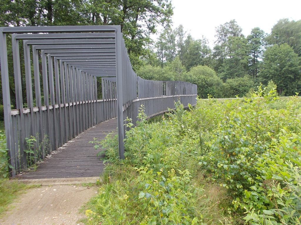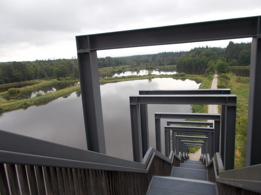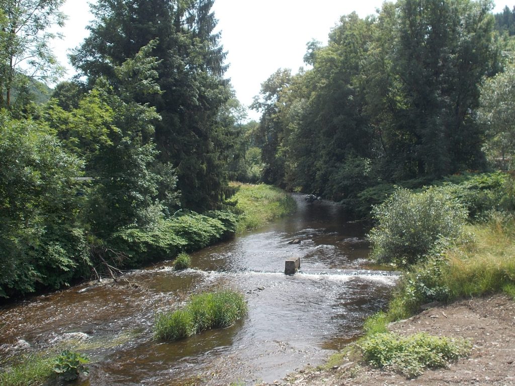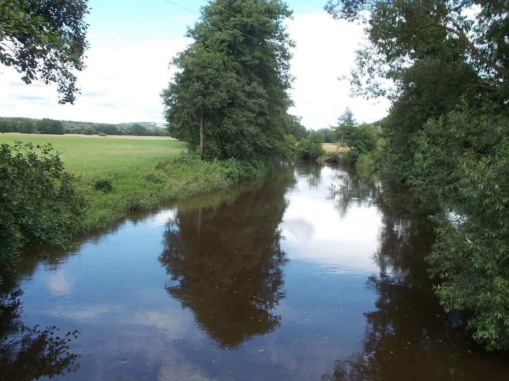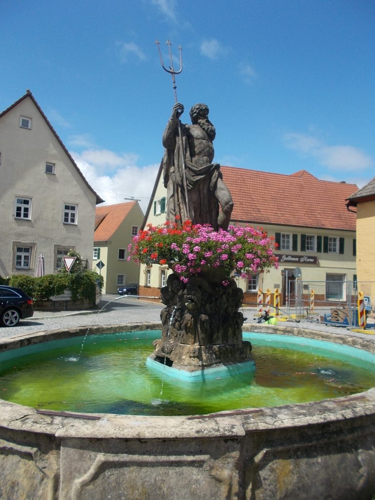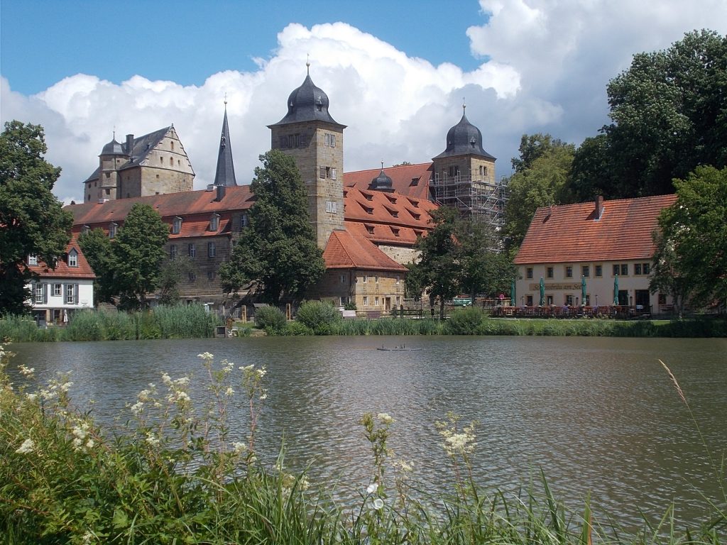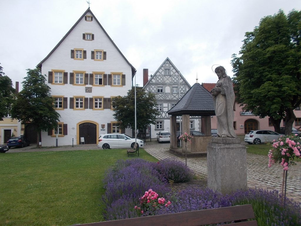 1. Tag: Bahnanreise nach Selb. Radtour Selb – Wunsiedel-Schönbrunn. 35 Tages-km. Mit dem Wetter hatte ich großes Glück: Lediglich an einem Vormittag (3. Tag) gab’s leichten Regen. Selb – Porzellanstadt.Renaturierung des Selbbaches, aber nur soweit sichtbar. Selbbachtal.Und was gibt’s heute? …… Bahntrassenradeln (zwischen Selb und Wunsiedel-Holenbrunn)! Die Kilometrierung beginnt in Hof Hbf und endet in Marktredwitz. Die alte Bahntrasse folgt zunächst dem Lauf des Selbbachs. Sie wird immer wieder unterbrochen durch die Autobahn A 93. Ich musste nur wieder den Zugang zur Trasse finden. Rechts neben dem Weg fließt die Eger.Am Bahnhofsplatz von Schwarzenhammer ist das hölzerne Bahnhofsgebäude schon 1986 bei Streckenstilllegung abgerissen worden. Auf einer Infotafel ist zu lesen, dass man damals von Paris bis hierher mit der Bahn reisen konnte.Blick auf Thierstein mit Kirche und Burg.Ab und zu geht es auch ‚mal bergauf.Hier am Bahnhof Wunsiedel-Holenbrunn endet der bisherige Bahnradweg. Hier verkehren Züge zwischen Hof und Marktredwitz. Auf der anderen Seite der Bahnlinie beginnt eine weitere, stillgelegte Bahntrasse …… und zwar nach Leupoldsdorf. Hier die Auffahrt zur Bahntrasse.Nun war es nicht mehr weit bis zum Hotel in Wunsiedel-Schönbrunn. Draußen sitzen bei einem kühlen Radler, Tourentagebuch schreiben, während der Pedelec-Akku an der öffentlichen Ladestation aufgeladen wird. 2. Tag: Radtour von WUN-Schönbrunn nach Bayreuth. 53 Tages-km. Die Brücke über die Rösla verheißt die Fortsetzung des Bahntrassenradelns nach Leupoldsdorf.Auch hier sind einzelne Bahnkilometer-Steine anzutreffen. 7,6 km seit Bhf WUN-Holenbrunn. Die Gesamtstrecke ist nur 10,5 km lang. Die evang. Christuskirche von Tröstau liegt außerhalb des Dorfes.Auf den letzten Kilometern der Bahntrasse ist diese unbefestigt. Nachdem es heute Morgen schon geregnet hat, ist der sandige Weg weich geworden. Diese „Drängelgitter“ gehören irgendwie zum Bahntrassenradeln dazu. Es wäre ohne diese einfach zu schön. Ende der Bahntrasse in Leupoldsdorf. Der Kilometerstein entspricht nicht der Tatsache. Ein Stück Gleis mit Güterwagen darauf als Erinnerung daran, dass hier einmal Züge verkehrten.Das „Hammerschloss“ aus dem 17. Jh. in Leupoldsdorf. „Hammer“ = Eisenhammer = Eisenverarbeitung.Ortschaft Meierhof. Ab jetzt geht’s heftig bergauf auf unbefestigten Waldwegen.Am Wegesrand.Die erste Anhöhe, der Rudolfsattel (Rudolfstein 866 müNN) ist geschafft. Zum Verschnaufen geht’s auch ‚mal bergab.Auch die zweite Anhöhe ist geschafft: 853 müNN. Endlich wieder Asphalt und nachhaltig (10 %) bergab.Schneller Fotohalt: Nordabfahrt – Schanze am Ochsenkopf (1.024 müNN).Bischofsgrün.Bischofsgrün.Jetzt lerne ich auch einmal den Weißen Main kennen.Und was kommt dann? Bahntrassenradeln von Bischofsgrün nach Bad Berneck.Immer schön am Weißen Main entlang. In Bad Bernau hat der Weiße Main Verstärkung durch die Olschnitz erhalten und ist ganz schön groß geworden.Benk, Markgrafenkirche St. Walburga.Bindlach, St. Bartholomäuskirche. Jetzt ist es nicht mehr weit bis zum Hotel in Bayreuth.3. Tag: Zweimal Bahntassenradeln ab/bis Bayreuth. 83 Tageskilometer. Die 1. Trasse führt ab Stadtrand nach Hollfeld.Im leichten Regen durchs Truppachtal.Vor Obernsees die St. Rupert-Kapelle.Truppach, Schloss Truppach mit angrenzender Landwirtschaft.Gut versteckt: Schloss Plankenfels.Höhenburg in Wadendorf. Die Burg Wadendorf wurde 1453 erstmals urkundlich erwähnt und liegt auf einem Hügel in unmittelbarer Nähe zum Fluss Wiesent. Südliche Ringmauer mit zwei Rundtürmen, zweigeschoss. Hauptgebäude sowie Reste der Toranlage bilden die Höhenburg. Bei Stechendorf.Das historische Rathaus der Stadt Hollfeld. Trotz „Ruhetag“ darf ich die Außensteckdose dazu nutzen, den Pedelec-Akku nachzuladen. Gleich rechts neben dem Rathaus das „Wittauer Haus“, heute Musikschule. Die Familie Wittauer ist 1926 nach Amerika ausgewandert.Marienplatz.Die ehemalige Kirche St. Gangolf, heute Kulturzentrum.Blick auf die Stadt Hollfeld.Das Obere Tor.Pfarrkirche St. Mariä Himmelfahrt.Innenansicht.Auf dem Weg zur nächsten Bahntrasse muss ein Höhenzug überwunden werden. Dieses schöne Fachwerkhaus steht in Krögelstein.In Wonsees Mittagspause im Café am Marktplatz.Wonsees.Im Ortsteil Sanspareil Burg Zwernetz, staufische Burganlage um 1200. Ebenfalls in Sanspareil: „Morgenländischer Bau“, 1746-1747 erbaut, ein Schlösschen mit rückwärtigem Wohntrakt, nicht einsehbar. Das war der Küchenbau des Schlösschens, heute Café. Dazwischen kleine Parkanlage. Nach rasanter Talfahrt Ankunft am Marktbrunnen in Thurnau.Schloss Thurnau (Hotel).Schloss Thurnau, Seeseite.Es ist inzwischen heiß geworden. Wohltuender Schatten über der 2. Bahntrasse des Tages. Die ehemalige Bahntrasse ist hier Teil des Main-Radwegs.Auf der Brücke über den Roten Main bei Altdrossenfeld.Markgrafenkirche und … … Schloss Neudrossenfeld, ehemaliges Rittergut, seit 1993 öffentiche (Standesamt) und private (Restaurant) Nutzung. Auf dem Main-Radweg zurück zum Hotel in Bayreuth. 4. und letzter Tag: Bahntransfer Bayreuth – Wiesau, Radtour Wiesau – Tirschenreuth – Bärnau – Plößberg – Weiden(Oberpfalz) Bhf. Bahnheimreise. 67 Tageskilometer. – Wieder Bahntrassenradeln, und zwar auf dem Vizinalbahn-Radweg Wiesau – Bärnau. Im Gebiet der Gemeinden Wiesau, Tirschenreuth und Bärnau asphaltiert, ansonsten wassergebunden. Der morgendliche Regenschauer hat mit Verlassen des Zuges aufgehört. Kurz vor Bärnau wird sogar die Sonne heraus kommen. Der Schilderwald zeigt u.a. an, dass ich ab hier auch auf dem Waldnaabtal-Radweg unterwegs bin. Die Waldnaab entspringt südöstlich von Tirschenreuth … … und durchfließt das „Land der tausend Teiche“. Es sind sogar mehr als 2.500 Teiche. In Neustadt an der Waldnaab (NEW) werde ich der Waldnaab wieder begegnen.Die „Himmelsleiter“, 2012 errichtet, 95 Stufen nach oben, und …… es