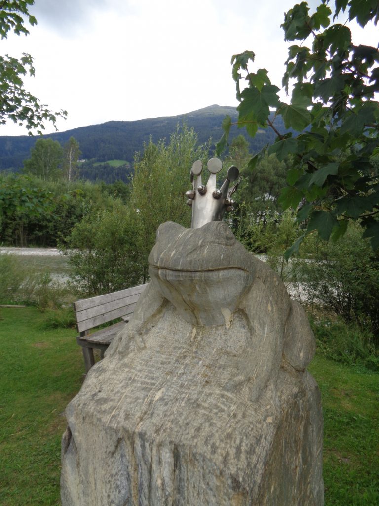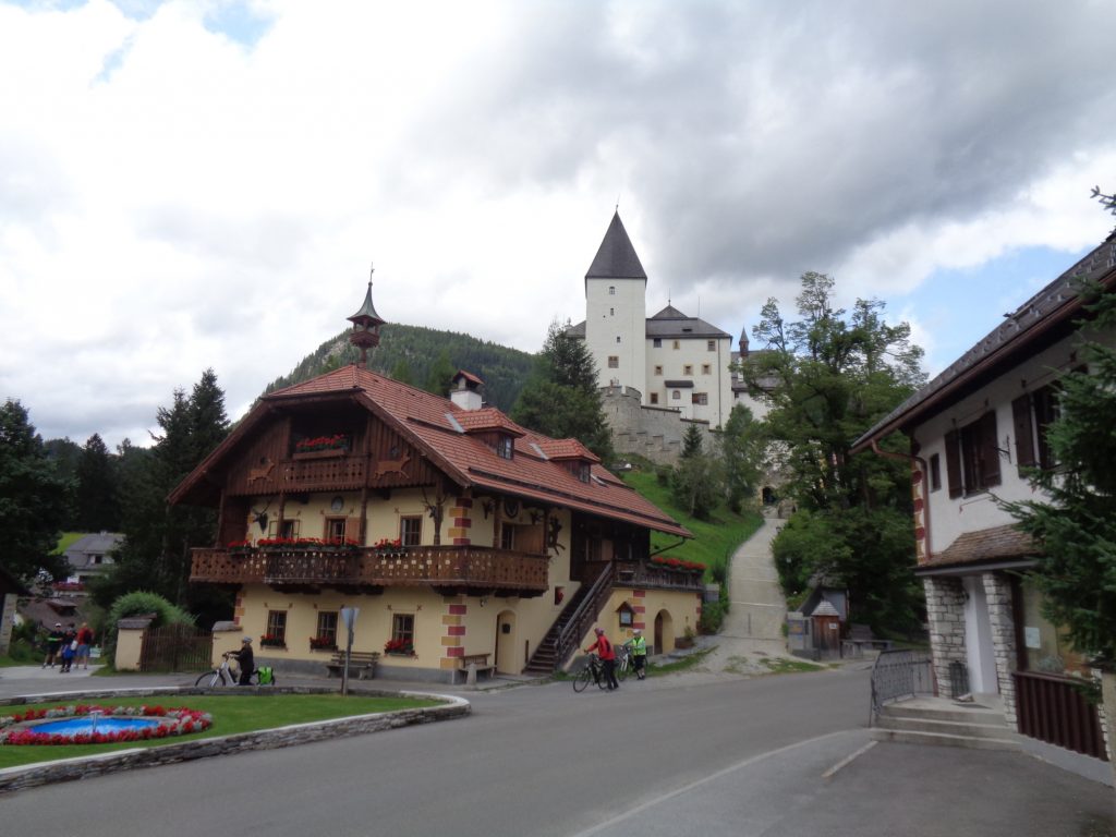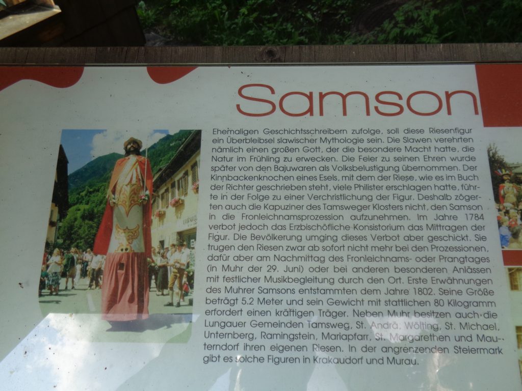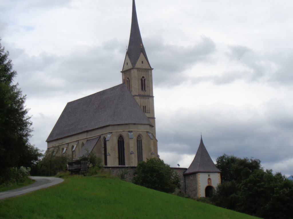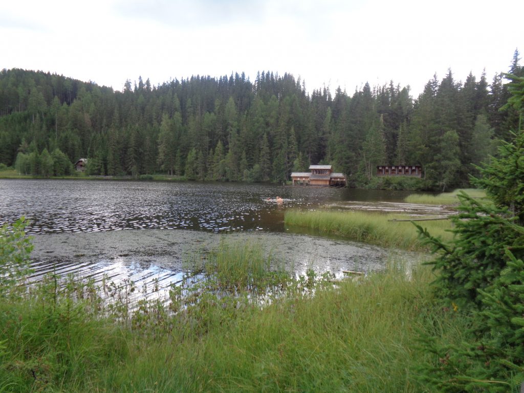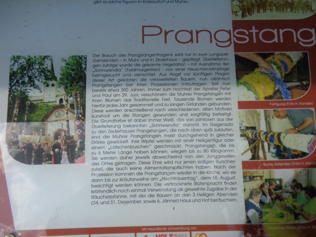 .Tag 1: Geführte Radreise. Bustransfer über Salzburg und den Tauerntunnel ins Riedingtal im Lungau. Wir beginnen mit der Radtour am Schlierersee in der Talgemeinde Zederhaus. Der See gehört zum Wasserkraftwerk Zederhaus mit einer Staufläche von 6,83 ha. Während die Reisegruppe weiter ein Stück talaufwärts radelt, wandere ich alleine um diesen Stausee. Gaststätte an dessen Nordufer.Ich komme zur Hubertuskapelle, am Südwestufer gelegen.Erbaut 1996/1997 von Zederhauser Jägern, 8-eckig, Natursteinsockel, im Erdgeschoss mit Lärchenschindeln ummandelt, obendrauf ein Pyramidendach mit durchfensterter Laterne.Der Innenraum wird dadurch sehr hell. Im Westen speist der Zederhauserbach den Schlierersee.Um die Wartezeit bis zur Rückkehr der Reisegruppe zu überbrücken, radle ich ihr ein Stück entgegen. Das Riedingtal ist ein Naturpark. Gemeinsam radeln wir talwärts. Stopp in der Ortschaft Zederhaus.Die Zederhauser Kirche.Die Zederhauser Kirche.In der Zederhauser Kirche gibt’s eine regionale Besonderheit zu sehen: Prangstangen...Die kommenden vier Nächte logieren wir in St. Michael an der Mur. 28 Tages-km, 127 Hm bergauf.- Sonnenaufgang am nächsten Morgen.Tag 2: Wettervorhersage: Regen. Ob’s stimmt? .Wir radeln zunächst auf dem Mur-Radweg in Richtung Tamsweg, dem Hauptort des Bezirks Lungau. Der Bezirk Lungau ist der einzige Bezirk in Österreich ohne Bezirkshauptstadt. Tamsweg (5.757 Einwohner) besitzt nämlich keine Stadtrechte.In Pischelsdorf verlassen wir das Murtal. Es geht heftig bergauf über einen Bergrücken zur Ortschaft Thomatal. Wallfahrtskirche Hl. Georg.Ein Blick in die dortige Kirche lohnt sich. Interessant sind auch die geschmiedeten Grabkreuze.Das soll den „Bischof vom Lungau“, auf einem Esel reitend, darstellen. Der Thomabach mündet in Madling nahe Ramingstein in die Mur. Burg Finstergrün.Verschnaufpause an der Mur.Weitergeht’s flussaufwärts und entlang der Murtalbahn. Die Strecke ist nach der Mariazeller Bahn die zweitlängste Schmalspurbahn (760 mm) Österreichs und wird bis Tamsweg von der Steiermarkbahn (StB) betrieben.Es regnet immer noch nicht. Also machen wir einen Abstecher zur Wallfahrtskirche St. Leonhard, hoch über Tamsweg gelegen.Wallfahrtskirche St. Leonhard.Wallfahrtskirche St. Leonhard.Blick auf Tamsweg.Nochmals: Wallfahrtskirche St. Leonhard.Mittagspause in St. Andrä.Nächstes Ziel ist der Ort Mariapfarr.Mariapfarr.Mariapfarr.Mariapfarr.Mariapfarr.Mariapfarr. „Stille Nacht“ – Brunnen.Mariapfarr.Schloss Moosham in Unternberg.Die kulturelle Attraktion ist die drittgrößte Burganlage im Salzburger Land.Das Schloss Moosham ist Zeitzeuge der Prozesse gegen Hexen, Zauberer und Bettler. Wieder zurück in St. Michael. Der Regen blieb aus. 61 Tages-km, 589 Hm. Kirche in St. Michael.Kirche in St. Michael.Kirche in St. Michael.Kirche in St. Michael.Tag 3: Heute steht uns unsere längste und anstrengendste Tagestour bevor. Durchs Murtal nach Tamsweg, am Seebach entlang bis zur steirischen Ortschaft Seebach, dann links ab und durchs Hochtal des Feisterbachs zum Prebersee. Blick auf Krakau im Feisterbachtal. Blickauf Krakau im Feisterbachtal. Der Feisterbach. Höhenunterschied Seebach – Prebersee 440 Hm bergauf innerhalb von 15 km. Der Prebersee ist ein Moorsee. Seit fast 180 Jahren wird am Prebersee Ende August das sog. Preberschießen veranstaltet, bei dem die Schützen auf das Spiegelbild der Zielscheibe auf der Wasseroberfläche zielen und das Geschoss als Abpraller die Scheibe in ca. 1 m Höhe trifft. Nicht nur ich selbst, sondern auch mein Fahrradakku benötigen Stärkung. Die „Ludlalm“ bietet nicht nur Speis und Trank, sondern hat auch eine eBike-Ladestation. Innerhalb von 10 km waren wir wieder „unten“, und zwar am Marktplatz von Tamsweg.Marktplatz in Tamsweg.Marktplatz in Tamsweg.Marktplatz in Tamsweg. Eispause.Heute blieben wir vom Regen nicht gänzlich verschont, aber wir konnten uns rechtzeitig unterstellen. Skulptur Froschkönig am Murufer.Entlang der Mur ging’s zurück nach St. Michael. 78 Tages-km, 914 Höhenmeter bergauf. Tag 4: Wieder durchs Murtal, an Tamsweg vorbei, ins Tal des Lessachbachs. Erster Stopp in der Ortschaft Lessach.Kirche in Lessach.Kirche in Lessach.Kirche in Lessach.Der Friedhof gilt als einzigartig. Seit dem 17. Jh. wurden und werden auf dem Friedhof alle Grabhügel einheitlich rechteckig mit schwarz und silbern bemalten Lärchenholzbrettern eingefasst, die mit Sprüchen versehen sind.Wir folgen weiter dem Tal des Lessachbaches.Im Lessachbachtal.Der Lessachbach.Ziel ist diese Jausenstation. ..Blick auf Teile von Lessach.Die Taurach bei St. Andrä.Wir folgen dem Gleis der Taurachbahn. Sie ist die Verlängerung der Murtalbahn und führt bis Mauterndorf.Burg Mauterndorf.Wir machen hier nur eine „schwäbische Besichtigung“ – also nur Außenbesichtigung. Eine Führung würde rd. zwei Stunden dauern, die wir nicht haben. Auf der Burg Mauterndorf (- 13. Jh. -), der ehemaligen Mautstation und zeitweiligen Sommerresidenz Salzburger Fürsterzbischöfe, wird das Mittelalter lebendig. Mauterndorf.Mauterndorf.Bahnhof Mauterndorf der Taurachbahn.Züge verkehren nur am Wochenende. Wir kehren wieder durchs Murtal nach St. Michael zurück. 70 Tages-km und 560 Hm bergauf. Tag 5: Abreisetag. Zuvor radeln wir noch durchs Murtal in Richtung Murquelle. Blick auf St. Michael (3.539 EW.).Es geht zunächst sanft bergauf. Zwischenstopp an einem Gehöft mit einigen Exponaten...Inzwischen ist der Radweg in die Fahrstraße gemündet. Es herrscht kaum Verkehr.Die Talgemeinde Muhr schreibt sich – im Gegensatz zum Fluss Mur – mit „H“. In der Pfarrkirche Muhr können – wie in der Nachbargemeinde Zederhaus – die sog. „Prangstangen“ besichtigt werden. Gemeinde Muhr.Gemeinde Muhr.Gemeinde Muhr. Riesenfigur „Samson“.Wir radeln noch tiefer ins Murtal, steil bergauf. Blick auf die Staumauer . Die Murquelle ist mit dem Rad nicht erreichbar. Blick auf den Stausee. Hier kehren wir um und genießen die Talfahrt
