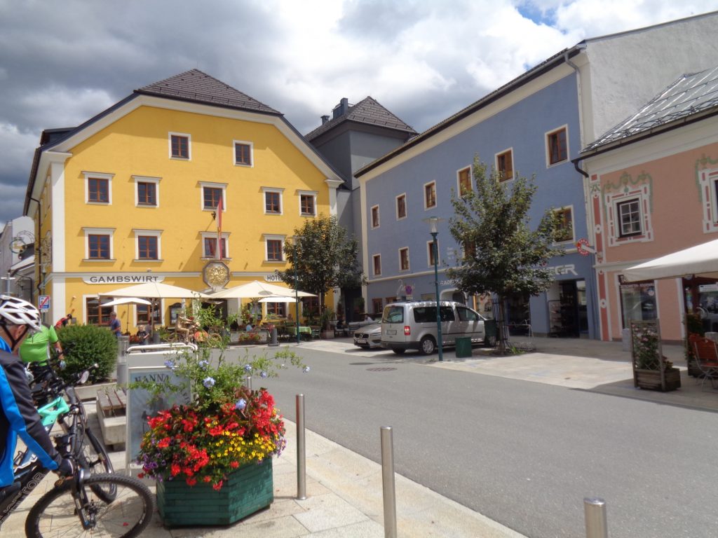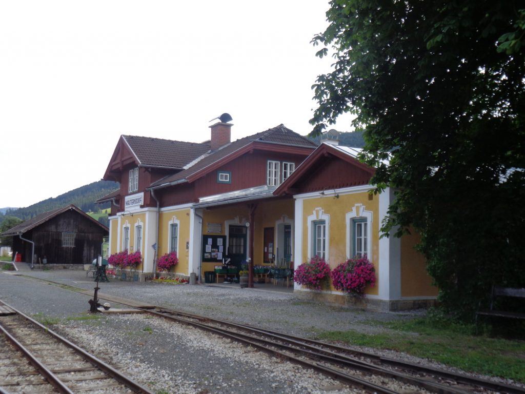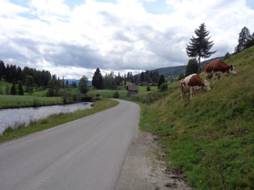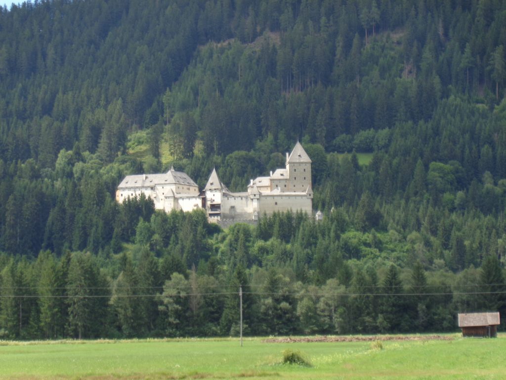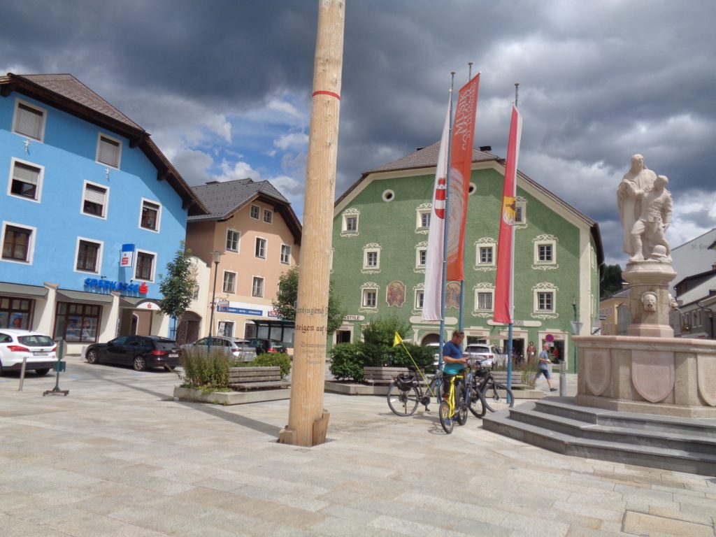 .Tag 1: Geführte Radreise. Bustransfer über Salzburg und den Tauerntunnel ins Riedingtal im Lungau. Wir beginnen mit der Radtour am Schlierersee in der Talgemeinde Zederhaus. Der See gehört zum Wasserkraftwerk Zederhaus mit einer Staufläche von 6,83 ha. Während die Reisegruppe weiter ein Stück talaufwärts radelt, wandere ich alleine um diesen Stausee. Gaststätte an dessen Nordufer.Ich komme zur Hubertuskapelle, am Südwestufer gelegen.Erbaut 1996/1997 von Zederhauser Jägern, 8-eckig, Natursteinsockel, im Erdgeschoss mit Lärchenschindeln ummandelt, obendrauf ein Pyramidendach mit durchfensterter Laterne.Der Innenraum wird dadurch sehr hell. Im Westen speist der Zederhauserbach den Schlierersee.Um die Wartezeit bis zur Rückkehr der Reisegruppe zu überbrücken, radle ich ihr ein Stück entgegen. Das Riedingtal ist ein Naturpark. Gemeinsam radeln wir talwärts. Stopp in der Ortschaft Zederhaus.Die Zederhauser Kirche.Die Zederhauser Kirche.In der Zederhauser Kirche gibt’s eine regionale Besonderheit zu sehen: Prangstangen...Die kommenden vier Nächte logieren wir in St. Michael an der Mur. 28 Tages-km, 127 Hm bergauf.- Sonnenaufgang am nächsten Morgen.Tag 2: Wettervorhersage: Regen. Ob’s stimmt? .Wir radeln zunächst auf dem Mur-Radweg in Richtung Tamsweg, dem Hauptort des Bezirks Lungau. Der Bezirk Lungau ist der einzige Bezirk in Österreich ohne Bezirkshauptstadt. Tamsweg (5.757 Einwohner) besitzt nämlich keine Stadtrechte.In Pischelsdorf verlassen wir das Murtal. Es geht heftig bergauf über einen Bergrücken zur Ortschaft Thomatal. Wallfahrtskirche Hl. Georg.Ein Blick in die dortige Kirche lohnt sich. Interessant sind auch die geschmiedeten Grabkreuze.Das soll den „Bischof vom Lungau“, auf einem Esel reitend, darstellen. Der Thomabach mündet in Madling nahe Ramingstein in die Mur. Burg Finstergrün.Verschnaufpause an der Mur.Weitergeht’s flussaufwärts und entlang der Murtalbahn. Die Strecke ist nach der Mariazeller Bahn die zweitlängste Schmalspurbahn (760 mm) Österreichs und wird bis Tamsweg von der Steiermarkbahn (StB) betrieben.Es regnet immer noch nicht. Also machen wir einen Abstecher zur Wallfahrtskirche St. Leonhard, hoch über Tamsweg gelegen.Wallfahrtskirche St. Leonhard.Wallfahrtskirche St. Leonhard.Blick auf Tamsweg.Nochmals: Wallfahrtskirche St. Leonhard.Mittagspause in St. Andrä.Nächstes Ziel ist der Ort Mariapfarr.Mariapfarr.Mariapfarr.Mariapfarr.Mariapfarr.Mariapfarr. „Stille Nacht“ – Brunnen.Mariapfarr.Schloss Moosham in Unternberg.Die kulturelle Attraktion ist die drittgrößte Burganlage im Salzburger Land.Das Schloss Moosham ist Zeitzeuge der Prozesse gegen Hexen, Zauberer und Bettler. Wieder zurück in St. Michael. Der Regen blieb aus. 61 Tages-km, 589 Hm. Kirche in St. Michael.Kirche in St. Michael.Kirche in St. Michael.Kirche in St. Michael.Tag 3: Heute steht uns unsere längste und anstrengendste Tagestour bevor. Durchs Murtal nach Tamsweg, am Seebach entlang bis zur steirischen Ortschaft Seebach, dann links ab und durchs Hochtal des Feisterbachs zum Prebersee. Blick auf Krakau im Feisterbachtal. Blickauf Krakau im Feisterbachtal. Der Feisterbach. Höhenunterschied Seebach – Prebersee 440 Hm bergauf innerhalb von 15 km. Der Prebersee ist ein Moorsee. Seit fast 180 Jahren wird am Prebersee Ende August das sog. Preberschießen veranstaltet, bei dem die Schützen auf das Spiegelbild der Zielscheibe auf der Wasseroberfläche zielen und das Geschoss als Abpraller die Scheibe in ca. 1 m Höhe trifft. Nicht nur ich selbst, sondern auch mein Fahrradakku benötigen Stärkung. Die „Ludlalm“ bietet nicht nur Speis und Trank, sondern hat auch eine eBike-Ladestation. Innerhalb von 10 km waren wir wieder „unten“, und zwar am Marktplatz von Tamsweg.Marktplatz in Tamsweg.Marktplatz in Tamsweg.Marktplatz in Tamsweg. Eispause.Heute blieben wir vom Regen nicht gänzlich verschont, aber wir konnten uns rechtzeitig unterstellen. Skulptur Froschkönig am Murufer.Entlang der Mur ging’s zurück nach St. Michael. 78 Tages-km, 914 Höhenmeter bergauf. Tag 4: Wieder durchs Murtal, an Tamsweg vorbei, ins Tal des Lessachbachs. Erster Stopp in der Ortschaft Lessach.Kirche in Lessach.Kirche in Lessach.Kirche in Lessach.Der Friedhof gilt als einzigartig. Seit dem 17. Jh. wurden und werden auf dem Friedhof alle Grabhügel einheitlich rechteckig mit schwarz und silbern bemalten Lärchenholzbrettern eingefasst, die mit Sprüchen versehen sind.Wir folgen weiter dem Tal des Lessachbaches.Im Lessachbachtal.Der Lessachbach.Ziel ist diese Jausenstation. ..Blick auf Teile von Lessach.Die Taurach bei St. Andrä.Wir folgen dem Gleis der Taurachbahn. Sie ist die Verlängerung der Murtalbahn und führt bis Mauterndorf.Burg Mauterndorf.Wir machen hier nur eine „schwäbische Besichtigung“ – also nur Außenbesichtigung. Eine Führung würde rd. zwei Stunden dauern, die wir nicht haben. Auf der Burg Mauterndorf (- 13. Jh. -), der ehemaligen Mautstation und zeitweiligen Sommerresidenz Salzburger Fürsterzbischöfe, wird das Mittelalter lebendig. Mauterndorf.Mauterndorf.Bahnhof Mauterndorf der Taurachbahn.Züge verkehren nur am Wochenende. Wir kehren wieder durchs Murtal nach St. Michael zurück. 70 Tages-km und 560 Hm bergauf. Tag 5: Abreisetag. Zuvor radeln wir noch durchs Murtal in Richtung Murquelle. Blick auf St. Michael (3.539 EW.).Es geht zunächst sanft bergauf. Zwischenstopp an einem Gehöft mit einigen Exponaten...Inzwischen ist der Radweg in die Fahrstraße gemündet. Es herrscht kaum Verkehr.Die Talgemeinde Muhr schreibt sich – im Gegensatz zum Fluss Mur – mit „H“. In der Pfarrkirche Muhr können – wie in der Nachbargemeinde Zederhaus – die sog. „Prangstangen“ besichtigt werden. Gemeinde Muhr.Gemeinde Muhr.Gemeinde Muhr. Riesenfigur „Samson“.Wir radeln noch tiefer ins Murtal, steil bergauf. Blick auf die Staumauer . Die Murquelle ist mit dem Rad nicht erreichbar. Blick auf den Stausee. Hier kehren wir um und genießen die Talfahrt