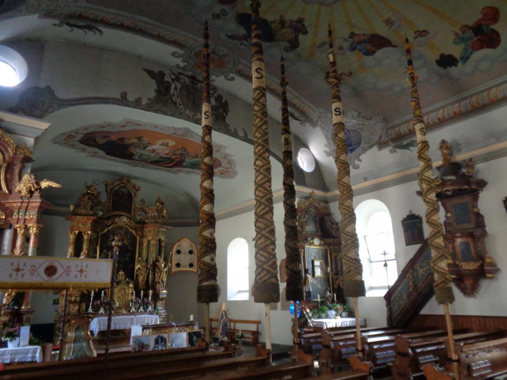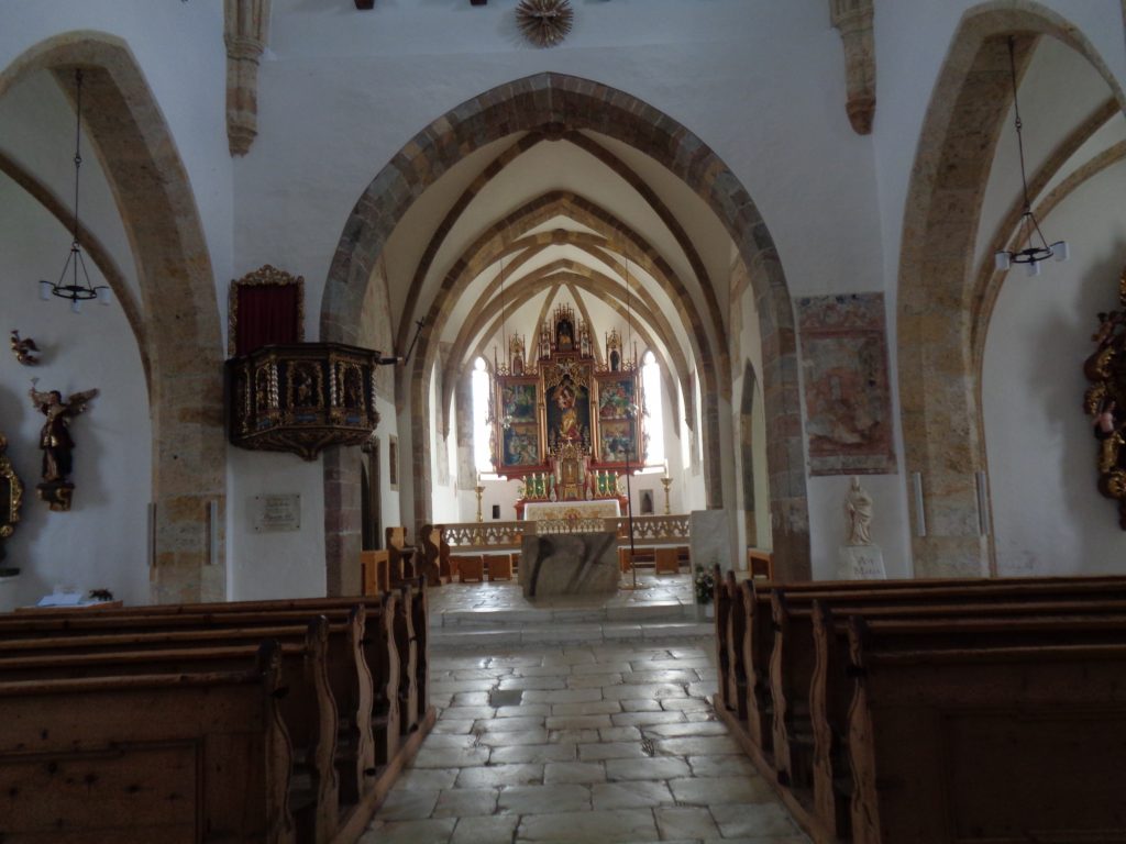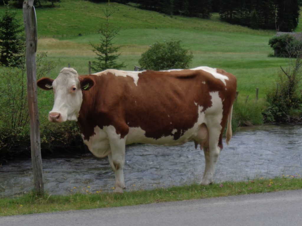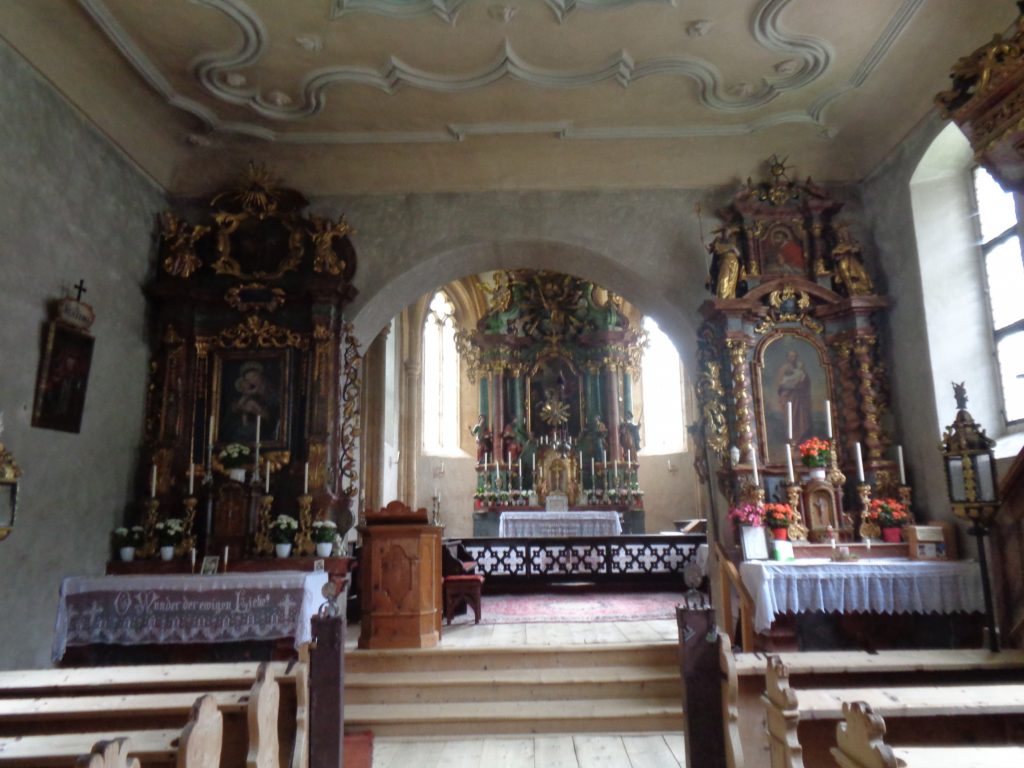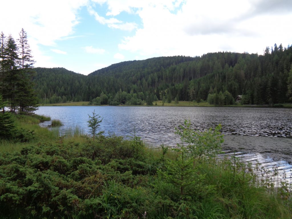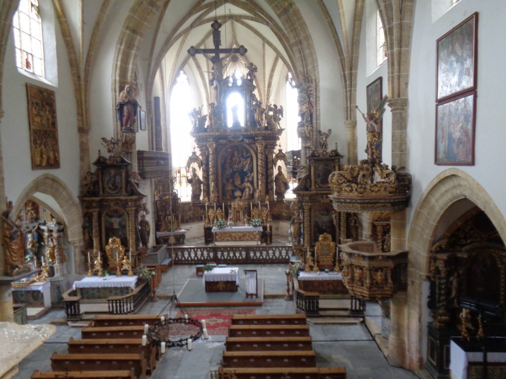 .Tag 1: Geführte Radreise. Bustransfer über Salzburg und den Tauerntunnel ins Riedingtal im Lungau. Wir beginnen mit der Radtour am Schlierersee in der Talgemeinde Zederhaus. Der See gehört zum Wasserkraftwerk Zederhaus mit einer Staufläche von 6,83 ha. Während die Reisegruppe weiter ein Stück talaufwärts radelt, wandere ich alleine um diesen Stausee. Gaststätte an dessen Nordufer.Ich komme zur Hubertuskapelle, am Südwestufer gelegen.Erbaut 1996/1997 von Zederhauser Jägern, 8-eckig, Natursteinsockel, im Erdgeschoss mit Lärchenschindeln ummandelt, obendrauf ein Pyramidendach mit durchfensterter Laterne.Der Innenraum wird dadurch sehr hell. Im Westen speist der Zederhauserbach den Schlierersee.Um die Wartezeit bis zur Rückkehr der Reisegruppe zu überbrücken, radle ich ihr ein Stück entgegen. Das Riedingtal ist ein Naturpark. Gemeinsam radeln wir talwärts. Stopp in der Ortschaft Zederhaus.Die Zederhauser Kirche.Die Zederhauser Kirche.In der Zederhauser Kirche gibt’s eine regionale Besonderheit zu sehen: Prangstangen...Die kommenden vier Nächte logieren wir in St. Michael an der Mur. 28 Tages-km, 127 Hm bergauf.- Sonnenaufgang am nächsten Morgen.Tag 2: Wettervorhersage: Regen. Ob’s stimmt? .Wir radeln zunächst auf dem Mur-Radweg in Richtung Tamsweg, dem Hauptort des Bezirks Lungau. Der Bezirk Lungau ist der einzige Bezirk in Österreich ohne Bezirkshauptstadt. Tamsweg (5.757 Einwohner) besitzt nämlich keine Stadtrechte.In Pischelsdorf verlassen wir das Murtal. Es geht heftig bergauf über einen Bergrücken zur Ortschaft Thomatal. Wallfahrtskirche Hl. Georg.Ein Blick in die dortige Kirche lohnt sich. Interessant sind auch die geschmiedeten Grabkreuze.Das soll den „Bischof vom Lungau“, auf einem Esel reitend, darstellen. Der Thomabach mündet in Madling nahe Ramingstein in die Mur. Burg Finstergrün.Verschnaufpause an der Mur.Weitergeht’s flussaufwärts und entlang der Murtalbahn. Die Strecke ist nach der Mariazeller Bahn die zweitlängste Schmalspurbahn (760 mm) Österreichs und wird bis Tamsweg von der Steiermarkbahn (StB) betrieben.Es regnet immer noch nicht. Also machen wir einen Abstecher zur Wallfahrtskirche St. Leonhard, hoch über Tamsweg gelegen.Wallfahrtskirche St. Leonhard.Wallfahrtskirche St. Leonhard.Blick auf Tamsweg.Nochmals: Wallfahrtskirche St. Leonhard.Mittagspause in St. Andrä.Nächstes Ziel ist der Ort Mariapfarr.Mariapfarr.Mariapfarr.Mariapfarr.Mariapfarr.Mariapfarr. „Stille Nacht“ – Brunnen.Mariapfarr.Schloss Moosham in Unternberg.Die kulturelle Attraktion ist die drittgrößte Burganlage im Salzburger Land.Das Schloss Moosham ist Zeitzeuge der Prozesse gegen Hexen, Zauberer und Bettler. Wieder zurück in St. Michael. Der Regen blieb aus. 61 Tages-km, 589 Hm. Kirche in St. Michael.Kirche in St. Michael.Kirche in St. Michael.Kirche in St. Michael.Tag 3: Heute steht uns unsere längste und anstrengendste Tagestour bevor. Durchs Murtal nach Tamsweg, am Seebach entlang bis zur steirischen Ortschaft Seebach, dann links ab und durchs Hochtal des Feisterbachs zum Prebersee. Blick auf Krakau im Feisterbachtal. Blickauf Krakau im Feisterbachtal. Der Feisterbach. Höhenunterschied Seebach – Prebersee 440 Hm bergauf innerhalb von 15 km. Der Prebersee ist ein Moorsee. Seit fast 180 Jahren wird am Prebersee Ende August das sog. Preberschießen veranstaltet, bei dem die Schützen auf das Spiegelbild der Zielscheibe auf der Wasseroberfläche zielen und das Geschoss als Abpraller die Scheibe in ca. 1 m Höhe trifft. Nicht nur ich selbst, sondern auch mein Fahrradakku benötigen Stärkung. Die „Ludlalm“ bietet nicht nur Speis und Trank, sondern hat auch eine eBike-Ladestation. Innerhalb von 10 km waren wir wieder „unten“, und zwar am Marktplatz von Tamsweg.Marktplatz in Tamsweg.Marktplatz in Tamsweg.Marktplatz in Tamsweg. Eispause.Heute blieben wir vom Regen nicht gänzlich verschont, aber wir konnten uns rechtzeitig unterstellen. Skulptur Froschkönig am Murufer.Entlang der Mur ging’s zurück nach St. Michael. 78 Tages-km, 914 Höhenmeter bergauf. Tag 4: Wieder durchs Murtal, an Tamsweg vorbei, ins Tal des Lessachbachs. Erster Stopp in der Ortschaft Lessach.Kirche in Lessach.Kirche in Lessach.Kirche in Lessach.Der Friedhof gilt als einzigartig. Seit dem 17. Jh. wurden und werden auf dem Friedhof alle Grabhügel einheitlich rechteckig mit schwarz und silbern bemalten Lärchenholzbrettern eingefasst, die mit Sprüchen versehen sind.Wir folgen weiter dem Tal des Lessachbaches.Im Lessachbachtal.Der Lessachbach.Ziel ist diese Jausenstation. ..Blick auf Teile von Lessach.Die Taurach bei St. Andrä.Wir folgen dem Gleis der Taurachbahn. Sie ist die Verlängerung der Murtalbahn und führt bis Mauterndorf.Burg Mauterndorf.Wir machen hier nur eine „schwäbische Besichtigung“ – also nur Außenbesichtigung. Eine Führung würde rd. zwei Stunden dauern, die wir nicht haben. Auf der Burg Mauterndorf (- 13. Jh. -), der ehemaligen Mautstation und zeitweiligen Sommerresidenz Salzburger Fürsterzbischöfe, wird das Mittelalter lebendig. Mauterndorf.Mauterndorf.Bahnhof Mauterndorf der Taurachbahn.Züge verkehren nur am Wochenende. Wir kehren wieder durchs Murtal nach St. Michael zurück. 70 Tages-km und 560 Hm bergauf. Tag 5: Abreisetag. Zuvor radeln wir noch durchs Murtal in Richtung Murquelle. Blick auf St. Michael (3.539 EW.).Es geht zunächst sanft bergauf. Zwischenstopp an einem Gehöft mit einigen Exponaten...Inzwischen ist der Radweg in die Fahrstraße gemündet. Es herrscht kaum Verkehr.Die Talgemeinde Muhr schreibt sich – im Gegensatz zum Fluss Mur – mit „H“. In der Pfarrkirche Muhr können – wie in der Nachbargemeinde Zederhaus – die sog. „Prangstangen“ besichtigt werden. Gemeinde Muhr.Gemeinde Muhr.Gemeinde Muhr. Riesenfigur „Samson“.Wir radeln noch tiefer ins Murtal, steil bergauf. Blick auf die Staumauer . Die Murquelle ist mit dem Rad nicht erreichbar. Blick auf den Stausee. Hier kehren wir um und genießen die Talfahrt