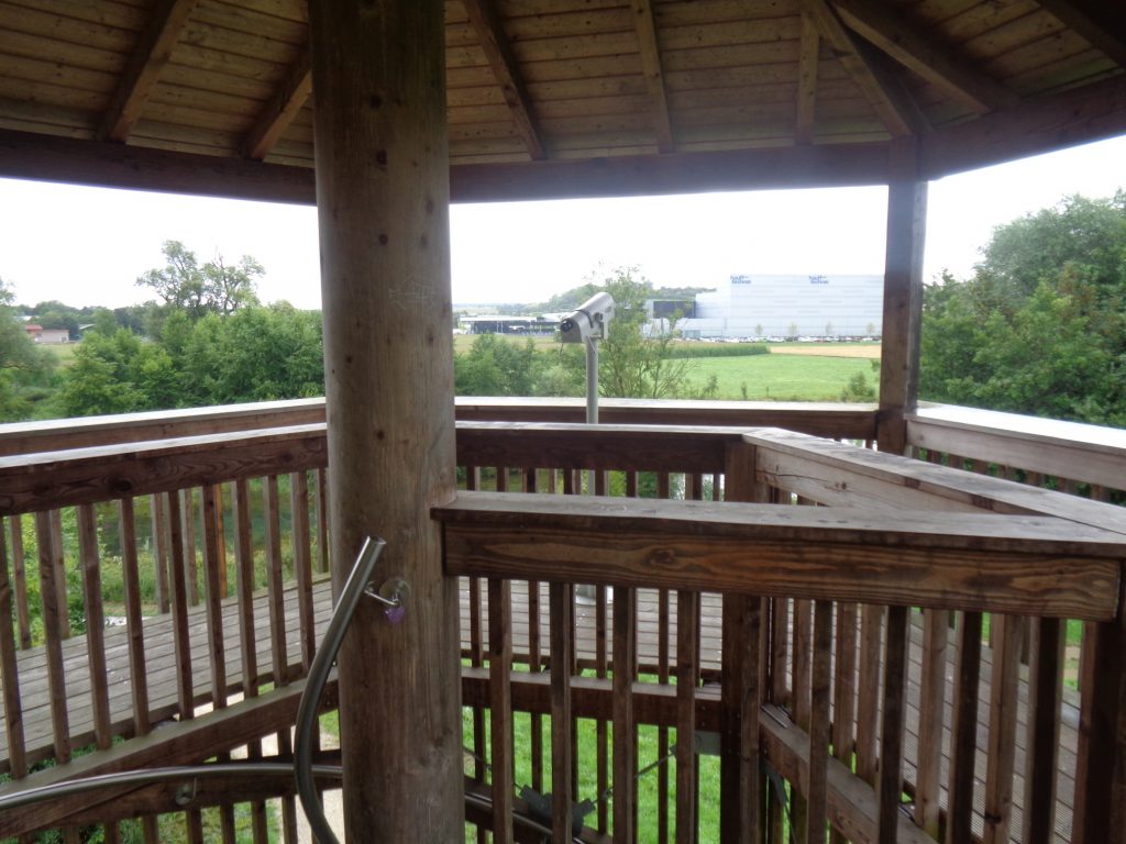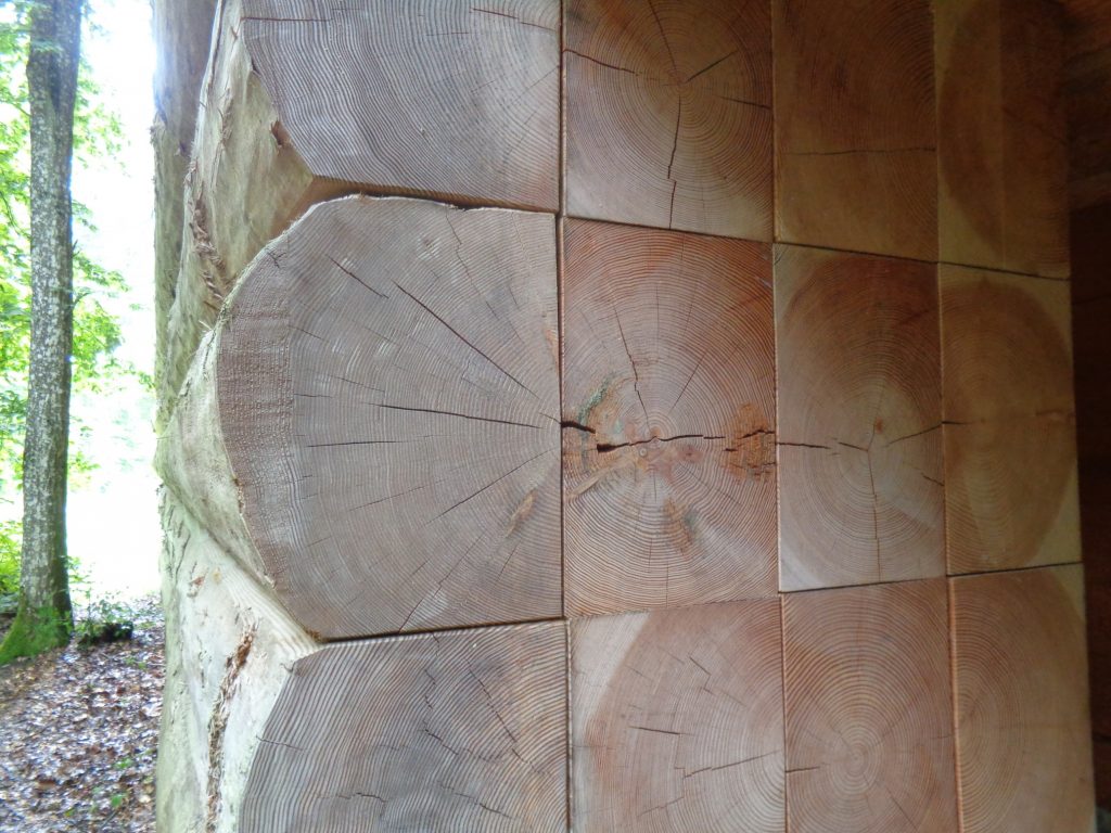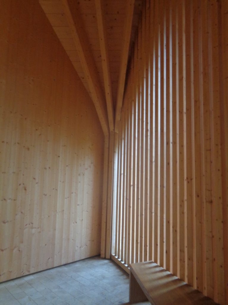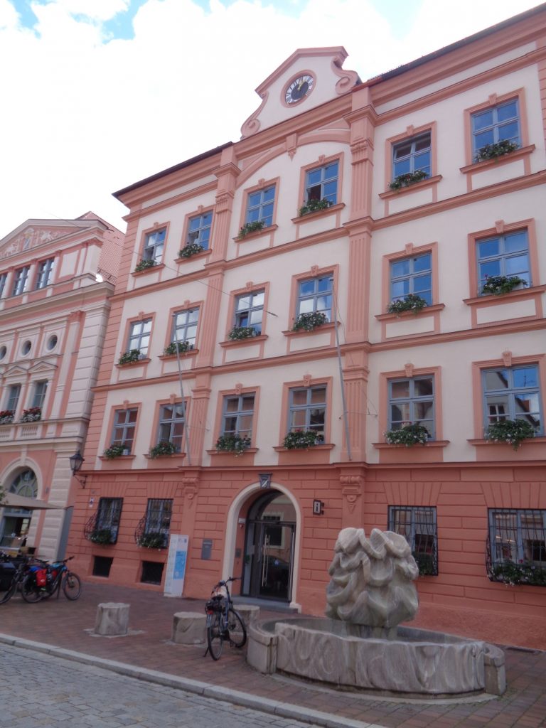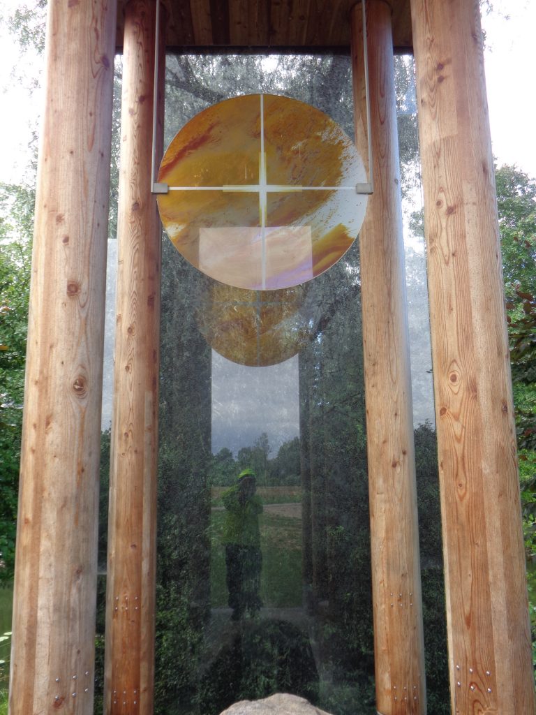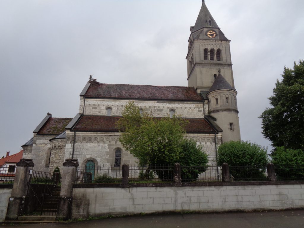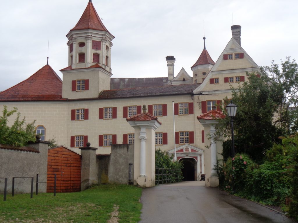 Tag 3: Start und Ziel ist heute die Kreisstadt Dillingen. Heute wird es nicht regnen. Zuerst durchs flache Donautal nach Holzheim. Im rechten Bilddrittel die Kühltürme des ehem. Atomkraftwerkes Gundremmingen.Holzheim.Hoch über Holzheim (Sackgasse) steht die Sebastianskapelle.Verschlossen, aber durch ein kleines Fenster gelingt mir diese Innenaufnahme.Kirche in Ellerbach Gde. Holzheim.Die Kirche ist offen. Zusamzell. Kirche mit Storchennest.Die 7. und damit die letzte: Kapelle bei Emersacker von Wilhelm Huber. Durch eine Schiebetür betritt man das Innere der Kapelle. – Die Kapelle steht an einer kleinen Waldlichtung im engen Tal der natürlich dahinfließenden Laugna. Der an sich weiße Innenraum erhält sein Licht ausschließlich über ein Oberlicht aus blauem, mundgeblasenen Glas, welches die Wände anstrahlt. Der Raum mit einem einfachen, geflammten Metallkreuz ist ein Ort der Stille und ermöglicht Meditation. Äußerlich wirkt die Kapelle wie ein hölzerner, 12 m hoher Turmbau, zugleich ähnlich einem großen Baumstumpf. .Villenbach. Die Kirche ist offen, aber es findet gerade ein Gottesdienst statt..Donaubrücke bei Dillingen. Damit endet auch meine Radreise zu den 7 Wegkirchen. – 49 Tages-km.Es folgen noch einige Bilder von der Kreisstadt Dillingen an der Donau.