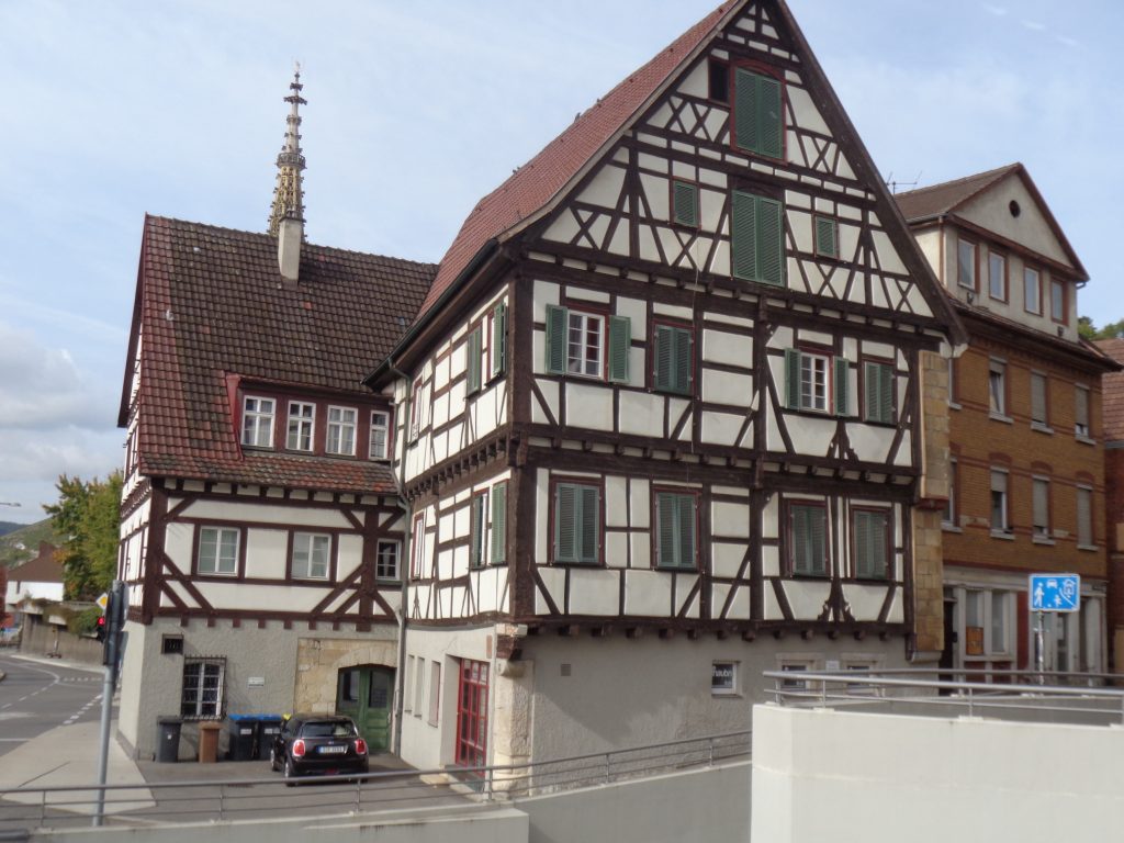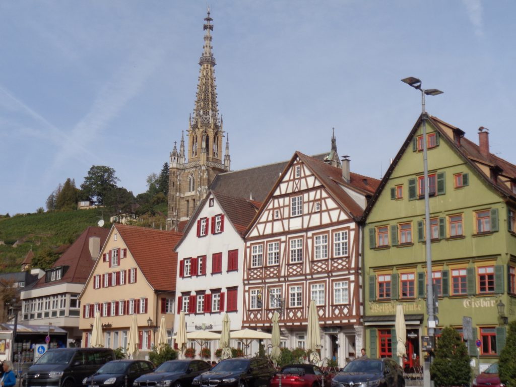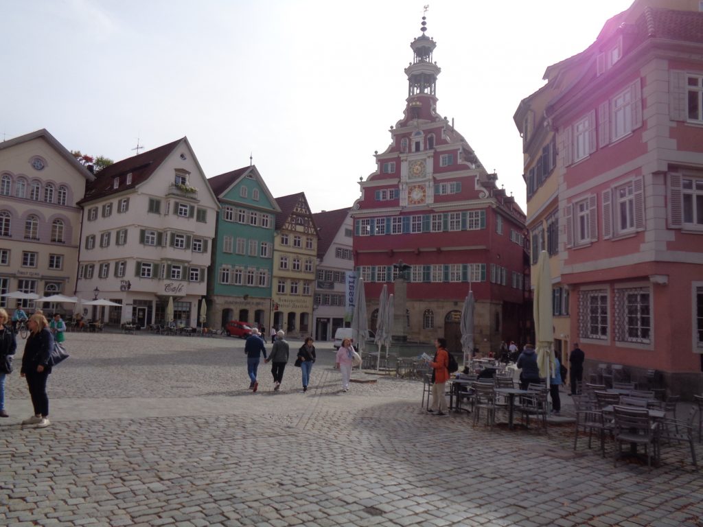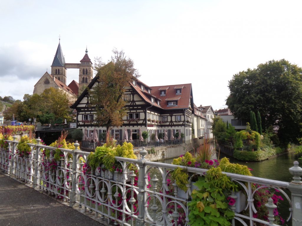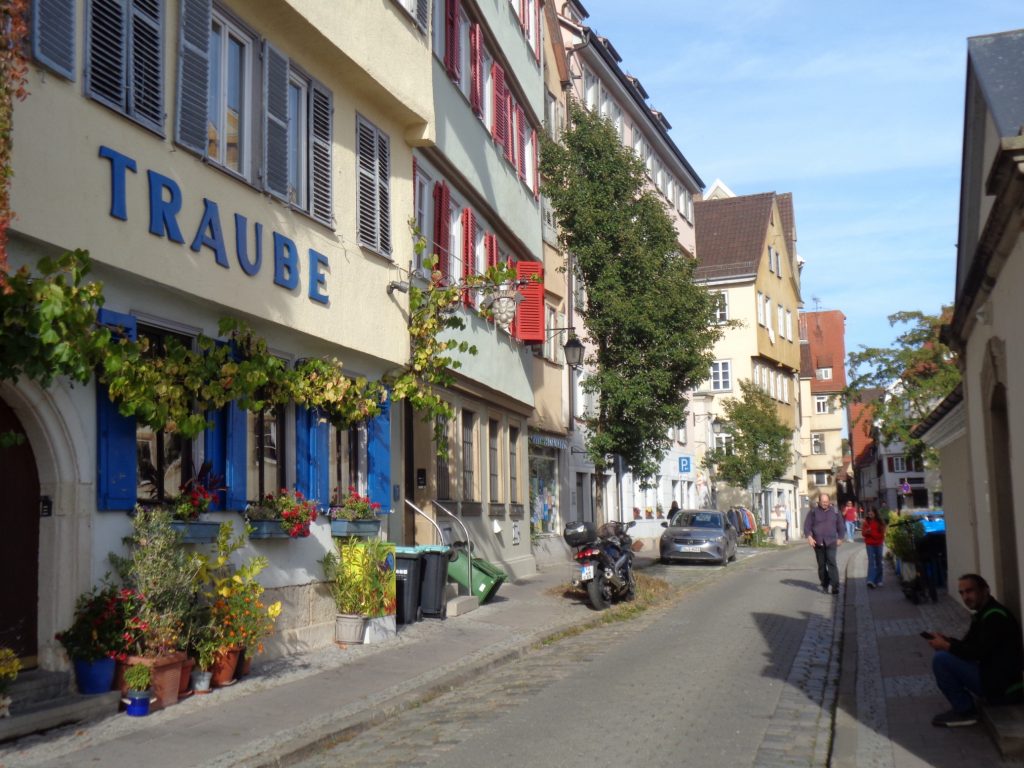 Tag 1: Start der Tour in Weinstadt-Endersbach im Remstal. – Rathaus.Heimatmuseum.Skulpturen am Ortausgang von Endersbach.Kernen-Stetten. Das Wasserschloss Stetten wird heute von der Diakonie genutzt.Schloss Stetten.Veitskirche in Stetten.Innenansicht.Brunnen vor der Veitskirche.Das alte Rathaus von Stetten.Die Weinlese ist noch nicht abgeschlossen..Die Y-Burg oberhalb von Kernen-Stetten. Teil einer Burganlage aus dem 13. Jh., die nie fertiggestellt wurde. Heute sind nur noch die vier Außenwände vorhanden.Blick auf die Weinberge.Blick auf Kernen-Stetten.Die sogenannte Burg in Esslingen am Neckar ist ein erhalten gebliebener Teil der mittelalterlichen Stadtbefestigung, der sich oberhalb der einstigen und heutigen Innenstadt befindet.Esslingen/Neckar.Esslingen/Neckar.Esslingen/Neckar.Esslingen/Neckar.Esslingen/Neckar.Esslingen/Neckar.Esslingen/Neckar.Blick auf Esslingen. In der Bildmitte ist die alte Stadtbefestigung zu erkennen.Blick in Neckartal Richtung Stuttgart.Flughafen Stuttgart.Aichtalviadukt.Aich-Neuenhaus: Evang. Kirche.Aich-Neuenhaus: Die Schaich, die bei Dettenhausen entspringt.Im Schaichtal.Kloster und Schloss Bebenhausen.Kloster und Schloss Bebenhausen.Kloster und Schloss Bebenhausen.