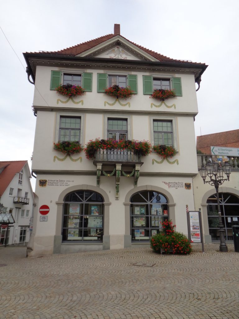 Kloster und Schloss Bebenhausen.Kloster und Schloss Bebenhausen. — Tagesziel Hbf Tübingen nach 65 Tages-km erreicht. Anschließend Bahntransfer zurück nach Weinstadt-Endersbach und WoMo-Fahrt nach Sigmaringen zur 1. Übernachtung.Tag 2: Heute starte ich in Sigmaringen und radle zurück zum Hbf Tübingen. Nach einem heftigen Anstieg geht’s hinunter ins Laucherttal, in dem ich am 19.07.2023 unterwegs war, allerdings in Gegenrichtung (Radreise Nr. 103).In Gegenrichtung sieht vieles gleich anders aus, und man entdeckt Dinge, die man beim ersten Mal übersehen oder nicht gefunden hat. Hohenzollern gehörte zu Preußen.Jungnau, Kirche und Kaiser-Wilhelm-Turm.Veringendorf, Pfarrkirche St. Michael.Veringendorf: „Pesttürmchen“ aus dem Jahre 1638, als die Pest ihr Ende im Oberdorf fand, nachdem alle Bewohner dahingerafft worden waren. Veringenstadt.Blick über Veringenstadt mit Burg der Grafen von Veringen und der Stadtpfarrkirche St. Nikolaus.Diesmal habe ich diese Aussichtsplattform bei Hettingen bestiegen.Blick flussabwärts.Blick flussaufwärts.Bald danach, 7 km vor Gammertingen, verlasse ich das Laucherttal und radle durchs Fehlatal nach Burladingen. Der Hohenzollern-RW führt original über Gammertingen nach Burladingen. Ich wähle den schöneren Weg. Ist das nicht schön hier? Kein Autoverkehr!Neufra ist erreicht.Pfarrkirche St. Mauritius, 1860 – 1862 als dreischiffige Basilika im neugotischen Stil erbaut. St. Mauritius in Neufra.Burladingen, Georgskirche.Burladingen. Bahnstrecke Gammertingen – Hechingen. Ab Burladingen folge ich dem Tal der Killer. Bei Jungingen..Backsteinkirche in Hechingen-Schlatt.Hechingen.Hechingen.Hechingen.Hechingen. – Ein Fotoblick auf die Burg Hohenzollern war mit wegen Gegenlichts verwehrt. Auf dem Weg nach Rottenburg/Neckar..Rottenburg am Neckar.Blick auf Rottenburg-Wurmlingen.Die berühmte „Wurmlinger Kapelle“.Tübingen, Altstadt.Tübingen, Altstadt.Tübingen, Altstadt.Tübingen, Altstadt.Tübingen, Altstadt.Tübingen, Altstadt.Tübingen, Altstadt.Tübingen, Altstadt.Beim Bahntransfer von Tübingen Hbf nach Sigmaringen gelang mir aus dem fahrenden Zug doch noch ein Bild von der Burg Hohenzollern. Es wurde bereits Abend, bis ich in Sigmaringen ankam. Das Schloss Sigmaringen ‚mal von einer anderen Seite aus fotografiert.Abendrot. Zweite Übernachtung in Sigmaringen. 89 Tages-km..Tag 3: Start bei +4 Grad Celsius. An der Donau entlang…… und an Sigmaringen-Laiz vorbei …… zum ehemaligen Kloster Inzigkofen. Das Konventgebäude wird heute von der Volkshochschule genutzt.1354 gründeten 2 Sigmaringer Bürgerfrauen eine Klause und lebten nach der Franziskanischen Laienregel, ab 1394 nach der Augustiner Regel. Die Förderung durch benachbarte Adelsgeschlechter und Schenkungen sicherten die materielle Basis. Das Kloster entwickelte sich zum Zentrum der Frauenmystik. 1830 säkularisiert, die letzte Nonne verstarb 1856. Das Kloster kam in den Besitz des Hauses Hohenzollern-Sigmaringen. Es gehört heute der Gde. Inzigkofen.Die Klosterkirche ist heute Pfarrkirche. Meßkirch, Adlerplatz.Meßkirch: Stadtkirche St. Martin.Meßkirch: Schloss, in der heutigen Form 1557 – 1563 erbaut vom Grafen Froben Christoph von Zimmern, Verfasser der berühmten Zimmerschen Chronik. Heute im Besitz der Stadt Meßkirch. Conradin Kreutzer, geboren in Meßkirch, war ein berühmter Musiker, Dirigent und Komponist.Meßkirch: ehemalige Herz-Jesu-Kirche.Vorbei an den Sauldorfer Seen..… und entlang der „Biberbahn“, auch Ablachtalbahn genannt. Reaktivierte Bahnlinie (zunächst für touristische Zwecke) zwischen Radolfzell, Stockach und Mengen/Württ.Ruine des ehemaligen Bahnhofs Schwackenreute.In Schwackenreute zweigte die „Räuberbahn“ von der Ablachtalbahn ab. Sie führte über Ostrach nach Altshausen und ist inzwischen ebenfalls reaktiviert worden (zwischen Ostrach und Altshausen, auch nur touristisch genutzt). Stockach.Stockach.Stockach.Stockach.Stockach ist eine Narrenhochburg in der Schwäbisch-alemanischen Fasnet.Der Hohenzollern-Radweg endet eigentlich in Konstanz. Ich beende ihn in Ludwigshafen/See. Zum einen kenne ich den Weg bis Konstanz bereits, zum anderen möchte ich auf anderem Wege nach Sigmaringen zurückradeln, um mir das „Abenteuer Bahnfahren“ zu ersparen. – Blick zurück auf Ludwigshafen am See. Ein Fahrgastschiff der Weißen Flotte nimmt Kurs auf Ludwigshafen/See. Mmh!Sipplingen.Sipplingen.Da wäre auch ein passender Steccker für meine Akkus dabei gewesen. Aber ich habe einen 2. Akku dabei. Sipplingen. Im benachbarten Überlingen werde ich auf Grund von Baustellen und Streckensperrungen umgeleitet. Die Umleitungen sind gut ausgeschildert. Ich verlasse nämlich den Bodensee in Richtung Norden. Owingen.Aach-Linz. Pfullendorf.Pfullendorf.Pfullendorf.Pfullendorf.Pfullendorf.Pfullendorf.Am Stadtrand von Pfullendorf steht die Wallfahrtskirche Maria Schray.Wallfahrtskirche Maria Schray.Wallfahrtskirche Maria Schray.Wallfahrtskirche Maria Schray.Allee entlang des Andelsbachs.Krauchenwies.Krauchenwies.Wildpark Josefslust vor den Toren von Sigmaringen.Die letzten Kilometer zum Ziel. Das Schloss Sigmaringen der Fürsten von Hohenzollern-Sigmaringen in der Nachmittagssonne.Ziel erreicht! 111 Tages-km bzw. 265 Gesamt-km. Jetzt noch ein drittes Mal in Sigmaringen übernachten, dann ab nach Hause. — Dies war die letzte Radreise in 2023. Auf Wiedersehen in 2024! Vielen Dank für Ihren Besuch auf meiner Webseite.