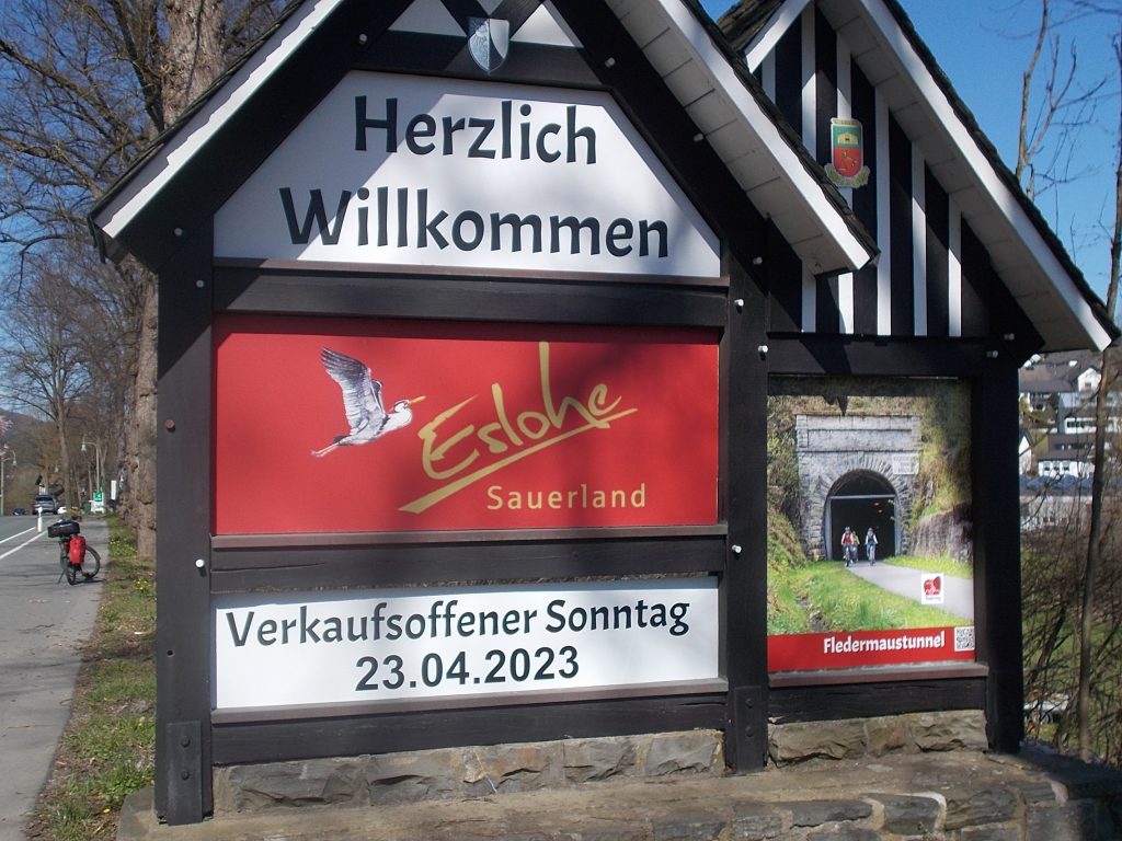 1. Tag: Start in Winterberg/Westf. – Auf den Besuch des Kahlen Asten und der Lennequelle verzichte ich gerne (teilweise Schotterweg oder nicht asphaltiert) und ‚rase‘ talwärts anfangs auf Bundesstraße, später ruhiger Landstraße nach Westfeld. Hier erste Kontakt mit der Lenne.Westfeld.Westfeld.Oberkirchen, St.-Gertrudis-Kirche.St.-Gertrudis-Kirche, Ursprung im 11. Jh., heutiges Gotteshaus aus dem 17. Jh. St.-Gertrudis-Kirche.Historischer Ortkern von Oberkirchen (Stadt Schmallenberg).Historischer Ortkern von Oberkirchen (Stadt Schmallenberg).Schmallenberg. Mehrere Brände vernichteten Teile der alten Stadt, die 1822 bis 1825 nach klassizistischen Bauplänen wieder aufgebaut wurde. Es entstand das neue Schmallenberg mit einem streng geometrischen Stadtbild, das bis heute gut erhalten ist.Schmallenberg, St.-Alexander-Kirche, wurde Mitte des 13. Jh. als Hallenkirche errichtet, …… und im Jahr 1905/06 durch einen Neubau (weiß) erweitert. Die Lenne zwischen Schmallenberg und Fleckenberg.Vor Fleckenberg.Fleckenberg, Pfarrkirche St. Antonius.Pfarrkirche St. Antonius.Saalhausen.Saalhausen, St.-Jakobus-Kirche, ursprünglich 15. Jh., 1909/10 so errichtet, zur Zeit Innensanierung.In Lennestadt verließ ich vorübergehend das Lennetal. Ich wollte zur Übernachtung nach Eslohe. Lange Steigungen standen mir bevor (12 % und 7 %). Hinter Halberbracht Akkuwechsel (wohl dem, der einen 2. Akku dabei hat!). Hier waren es „nur noch“ sieben Prozent Steigung.Fast geschafft! Denn ich hatte noch etwas zu erledigen. Eslohe, Kirche St. Peter und Paul.- Ich musste noch ein Stück über Eslohe hinaus fahren, und zwar bis zu der Stelle, an der ich schon einmal war, als ich das Ruhrtal beradelte, nämlich zur ehemaligen Bahntrasse (Meschede -) Wennemen – Schmallenberg.Dort verzweigt sich die alte Bahntrasse und führt über Eslohe nach Lenhausen (an der Lenne). Ehemaliger Bahnhof Eslohe(privat).Bahntrassenradeln! Jetzt ist es nicht mehr weit bis zum Hotel.2. Tag: Start mit Bahntrassenradeln!Es hat an diesem Tag nur einmal kurz und leicht geregnet, ausgerechnet beim Bahntrassenradeln. Der Kückelheimer Tunnel, auch Fledermaustunnel genannt. Er ist beleuchtet, 689 m lang und im Winter gesperrt.Gut gesichert!Blick auf Serkenrode.Kirche in Finnentrop-Fretter.Auf den letzten Kilometern vor Finnentrop-Lenhausen.Lenhausen. Wasserschloss aus dem 14. Jh. Pfarrkirche St. Anna, Lenhausen.Lenhausen. Ich suchte vergebens nach der alten Eisenbahnbrücke, die 1859/1861 erbaut worden ist. Die gefundene Brücke ist dagegen fast neuwertig. Schloss Brüninghausen, ehemals ein Wasserschloss, 1. urkundl. Erwähnung im 14. Jh.Altena. Blick auf Burg Altena, seit 1912 die erste Jugendherberberge der Welt. Die letzten „Tobungen“ der Lenne vor ihrer Mündung. – Der Lenne-Radweg sollte eigentlich „Lennetal-Höhenweg“ heißen. Die B 236 verläuft näher am Flußufer und ohne nennenswerte Steigungen. Schlechte Wegequalität, ständiges Auf und Ab (17 % waren es einmal lt. Schild). Erst ab Hagen war er ein Fluss-Radweg bis zur Mündung.Mündung der Lenne (im Bild vorne) in die Ruhr.Eine Eisenbahnbrücke überspannt die vereinigten Flüsse. Damit endete die Lenne-Tour. Ich fuhr noch zum Bahnhof Schwerte/Ruhr. Bahntransfer nach Olsberg zur Übernachtung. 102 Tageskm. Kirche in Olsberg-Bigge. Zwischen Olsberg und Winterberg verkehren derzeit keine Züge. Fahrradmitnahme im Bus war fraglich. Also radelte ich – gut ausgeschlafen – über die L 740 nach Winterberg.Unterwegs: Brunskappel im Tal der Neger. Schloss.Brunskappel, Kirche.Auch die Eisenbahn muss die Höhe erklimmen. Ich startete bei 340 müNN, kurz vor dem Ziel waren es 697 müNN. 24 Tageskm (in 74 Minuten). Der offizielle Ruhr-Radweg wäre nicht so komfortabel gewesen, und die Bundesstraße wegen der zahlreichen LKWs einfach zu gefährlich. Nach Ankunft in Winterberg Heimfahrt.