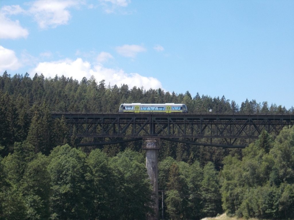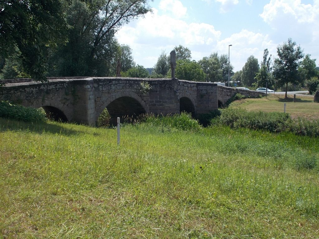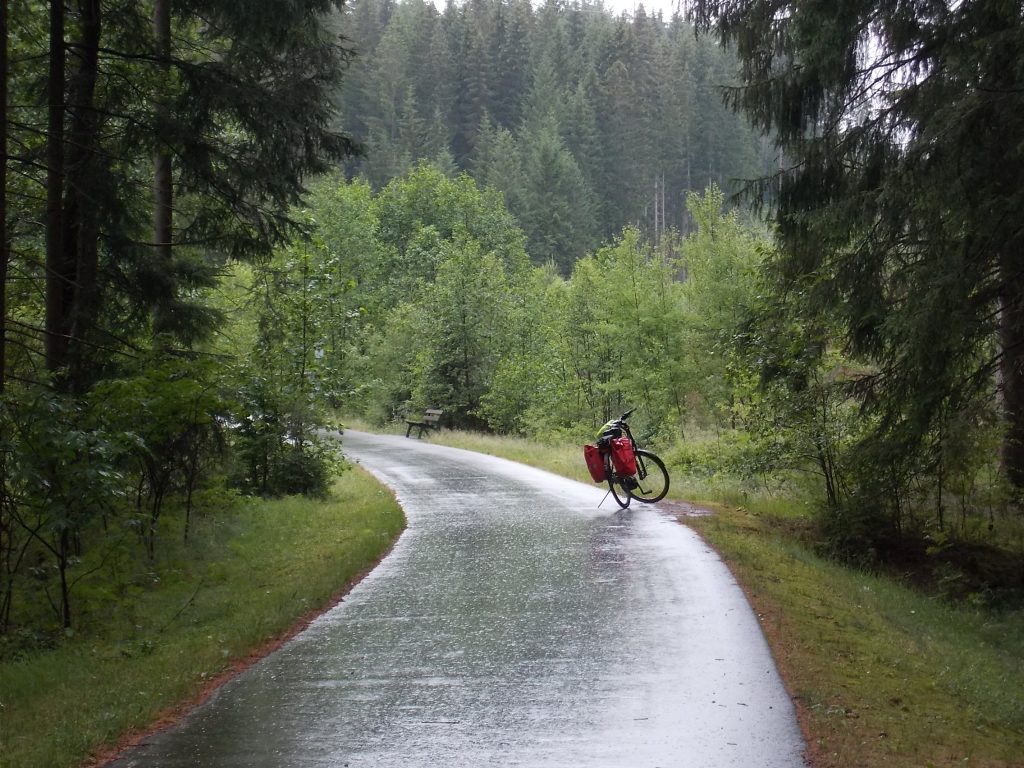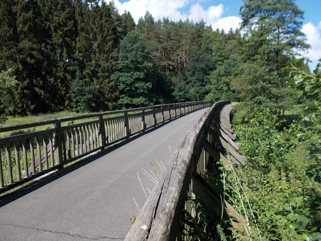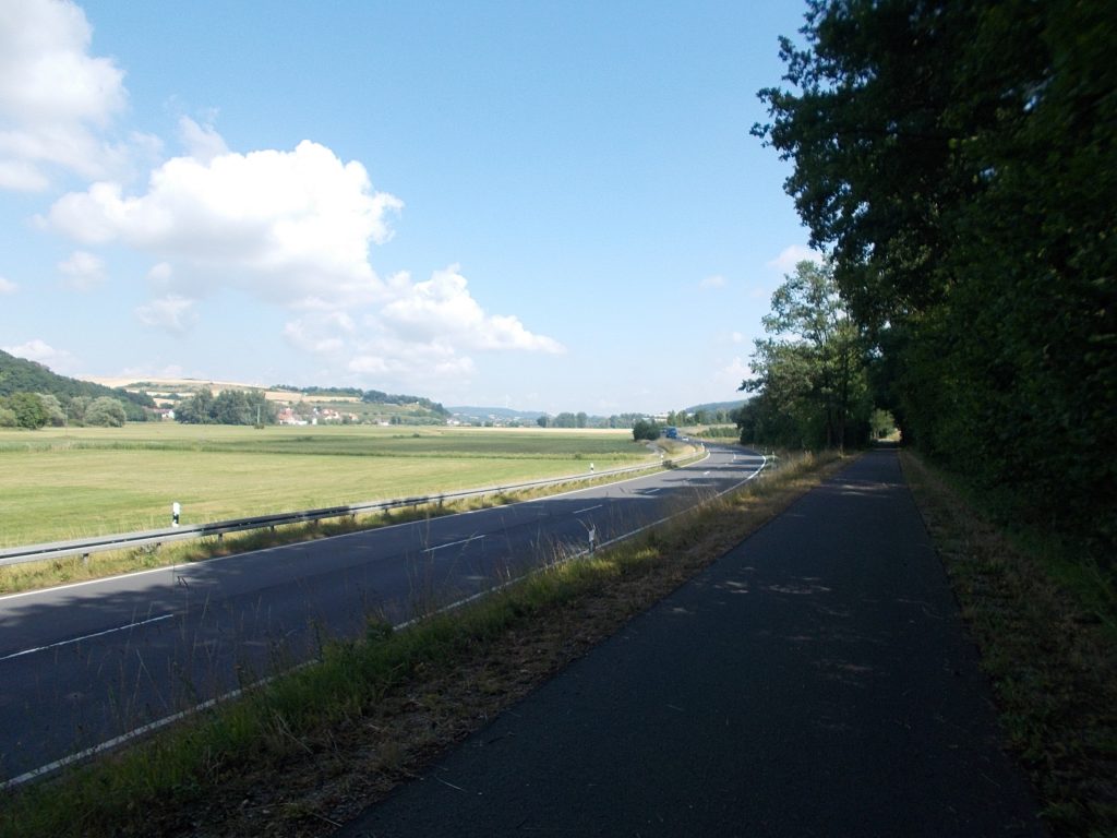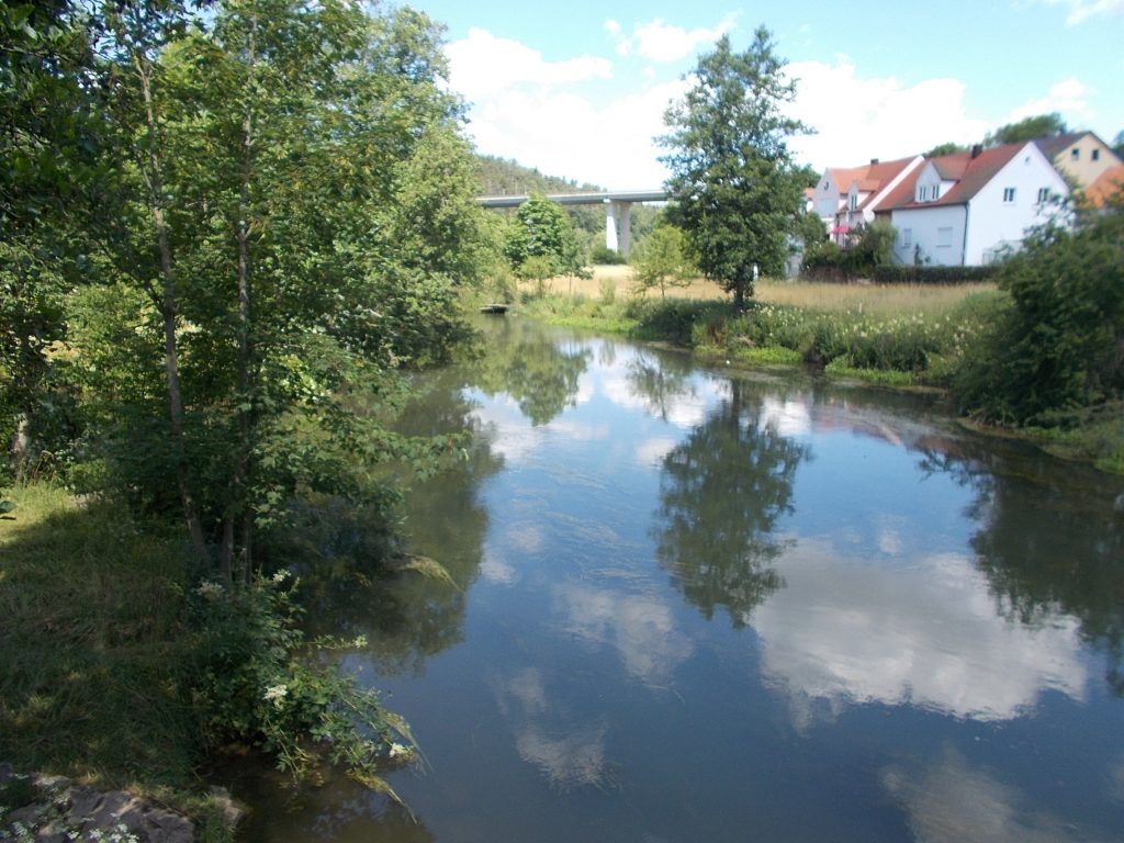 1.Tag: WoMo-Anreise nach Kemmern bei Bamberg (Oberfranken). Tourstart am Main-Radweg.Hinter Breitenglüsbach verlasse ich das Maintal und folge von da an dem Itztal. Am Ortsausgang von Rattelsdorf beginnt das Bahntrassenradeln. Die Bahnstrecke verband bis 1975 Rattelsdorf mit Seßlach.Es wird ein heißer Tag. Deshalb ist jeder Schatten willkommen.Standup-Paddler auf der Itz. Lahm Gemeinde Itzgrund. Evang. Kirche.Innenansicht.Schloss Lahm.Untermerzbach. Schloss, heute Schulungszentrum.Hier am alten Bahnhof Kaltenbrunn-Untermerzbach endet der komfortable Ausbau des Bahnradwegs. Auf den nächsten 10 km ist die Trasse kaum zu finden. Sie tritt erst wieder in Seßlach in Erscheinung.Schloss bei Helgersdorf.Seßlach. Die Stadt hat drei Tore: Rothenberger Torturm, Hattersdorfer Torturm und das Fußgängertor in der Stadtmauer.Seßlach.Seßlach.Seßlach.Seßlach.Seßlach.Seßlach.Steinbrücke über die Rodach vor dem Fußgängertor.Finale Bahntrassenradweg. Ende an der nächsten Querstraße, zuletzt am Industriegebiet vorbei. – Anschließend zurück nach Kemmern.Memmeldorf.Memmeldorf.Bei Busendorf Blick zum westlichen Itztalrand auf Gleusdorf. 81 Tageskilometer. Übernachtung in Kemmern.2. Tag: WoMo-Fahrt nach Neusorg (Oberpfalz). Vormittags leichter Regen. Bahntrassenradeln nach Fichtelberg. So schön ist die alte Bahntrasse nicht immer.Marterl am Ortseingang von Ebnath.Eisenbahnbrücke über die FichtelnaabFichtelnaab, entspringt dem Fichtelsee und mündet bei Windischeschenbach in die Waldnaab.Fichtelnaab.Es sieht nur so aus, als ginge gerade ein Regenguss von oben herunter.Mehlmeisel-Unterlind. „Hammerkirchl“, der Loreto-Kapelle nachempfunden, mit Abbild der Madonna von Loreto. Bahnradweg kurz vor Fichtelberg.„Bergbauhund“ – in Erinnerung an den früheren Bergbau in dieser Region.Der alte Bahnhof von Fichtelberg. Ende Bahntrassenradeln.Die Gemeinde Fichtelberg liegt – wie die Stadt Mainz – auf dem 50. Breitengrad. Modernes Rathaus in Fichtelberg.Der Fichtelsee ist ein etwa 10,5 Hektar großer künstlich angelegter Stauweiher oberhalb der Gemeinde Fichtelberg. Am Fichtelsee.Am Fichtelsee.Am Fichtelsee. Wieder zurück in Fichtelberg, folge ich dem Zubringer zur B 303. Auf der B 303 in rasanter Talfahrt hinunter nach …… Tröstau. Hier war ich bereits 2021 beim Bahntrassenradeln. Ein kurzer Abschnitt führt mich zum Abzweig in Richtung Bad Friedrichsbad. Blick auf Tröstau.Oberhalb von Tröstau.Schloss Alexandersbad, das nie ein Schloss war, sondern auch heute noch als Badehaus (Kurhotel) fungiert.Bad Alexandersbad: Luisenquelle, Rundbau mit Säulen über der Quelle, benannt nach Königin Luise. Kostprobe schmeckte säuerlich. Blick auf Bad Alexandersbad. Von derselben Stelle aus aufgenommen, nur weiter rechts. Marktredwitz. Rathaus.Marktredwitz, verkehrsberuhigte Zone. Marktredwitz. Meisterhaus, 1834 als Rotgerberei erbaut neben der 1812 gegründeten Mechanischen Buntweberei Joh. Benker KG. War Wohnsitz der Weber-MEISTER, seit 2006 Restaurant.Waldershof. Schloss (privat, nur Außenbesichtigung möglich), ursprünglich eine Burg, 1771 Ausbau zum Schloss. Unterhalb des Schlosses die Johannes-Kapelle (Hl. Johannes Nepomuk). Wieder zurück in Neusorg. 64 Tageskilometer. Die Regenzeit ist vorbei, Abendsonne über dem Tal. Übernachtung in Neusorg. 3. Tag: Planänderung. Heute bleibt das WoMo zunächst in Neusorg (Foto: Kirche von Neusorg) stehen. Denn ich habe beschlossen, den Fichtelnaab-Radweg zu erkunden. Kapelle am Ortsrand von Neusorg.Blick in die Kapelle.Die Fichtelnaab.Die Fichtelnaab.Warum ich dieses Tal beradle? Beim Kartenstudium stellte ich fest, dass ein Abschnitt des Radwegs auf ehemaliger Bahntrasse verläuft. Er beginnt in Erbendorf an dieser DEUTZ-Diesellok.Schön schattig, ca. 6.5 km komfortables Radeln. Radweg-Kapelle bei Erbendorf.Alte Eisenbahnbrücke über die Fichtelnaab.Von dieser Brücke ein letzter Blick auf die Fichtelnaab, denn die Bahntrasse macht eine Linkskurve, weg vom Fluss. Schöner Ausblick auf die oberpfälzer Landschaft. Krummennaab. Simultankirche St. Leonhard. In Reuth bei Erbendorf endet die alte Bahntrasse. Schloss Reuth. Um nicht den gesamten Weg nochmals zu beradeln, schließt sich ein kleiner Rundkurs an. Auf dem Weg nach Thumsenreuth treffe ich erneut auf einen Bahntrassenradweg, allerdings nur 1,9 km weit befahrbar. Kath. Kirche Herz Jesu in Thumsenreuth.Schloss Thumsenreuth.Über Thann und Wetzldorf gelange ich bei Grötschenreuth wieder ins Tal der Fichtelnaab. Wo ist hier das Schloss Grötschenreuth? Das sieht doch danach aus.Nein, es ist ein Hofgut, wie ich von der Alt-Bäuerin erfahre. Diese Kapelle gehört zum Gut. Das ist das Schloss Grötschenreuth. Dann suchte ich noch nach dem Schloss Trevesen – und fand es auch. Es ist heute ein Restaurant, aber geschlossen.Seitenansicht von Schloss Trevesen.Kirche von Trevesen.Der ideale Rastplatz für die Mittagspause: Schattig, Bänke und Tische, ein Minibrunnen („Klaus-Brunnen“), und nebenan rauscht die Fichtelnaab vorbei. Es hat gedauert, bis dieses Foto gelungen ist. Aber auf diese Gelegenheit wartete noch jemand. – 47 Tageskilometer. Anschließend WoMo-Fahrt nach Sulzbach-Rosenberg zur Übernachtung. 4. Tag: Start der Tagestour um 7 Uhr morgens in Sulzbach-Rosenheim bei 10 Grad Celsius. Erstes Ziel ist die Hochschulstadt Amberg an der Vils. Durch das Ziegeltor in die Innenstadt.AmbergAmbergAmbergAmbergAmbergAmbergAmbergAmberg. Die „Stadtbrille“ – kommt um 8 Uhr nicht so richtig zur Geltung.Deshalb dieses Foto (vorweggenommen) zur Mittagszeit.Zwischen Amberg und Schmidmühlen Bahntrassenradeln, hin und zurück. Hier der Beginn bei Amberg …… und hier das Ende bzw. der Beginn in Schmidmühlen. Ich habe nur die Rückfahrt fotografisch festgehalten wegen des günstigeren Sonnenlichts. – „1.000 Jahre Vils-Schifffahrt“ zwischen Amberg und Regensburg, im Jahre 1010 urkundlich verbrieft..Die Vils flussabwärts in Schmidmühlen. Von rechts mündet die Lauterach in die Vi