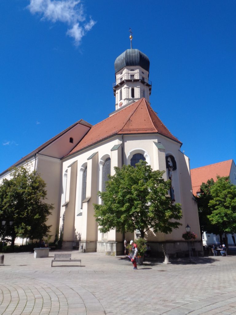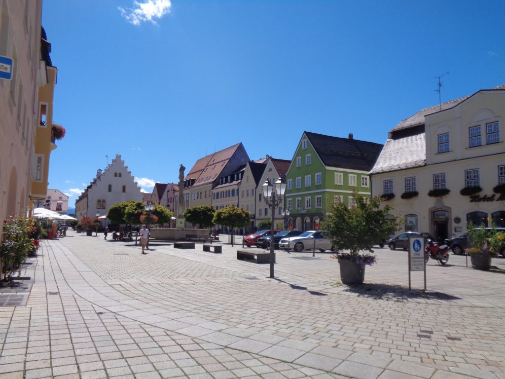 Meinem Grundsatz folgend, dass jede Radreise in Deutschland mit einer früheren Radreise verknüpft werden muss, traf dies für die Stadt Schongau am Lech zu. Also machte ich einen Abstecher dorthin. Der Marktplatz.