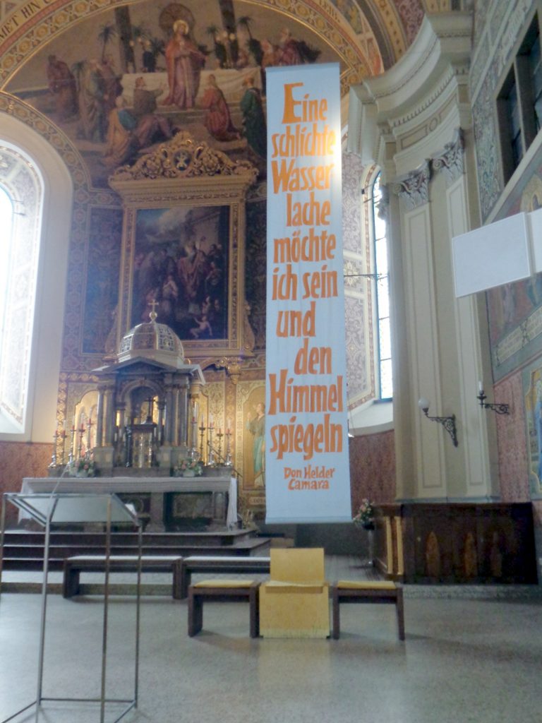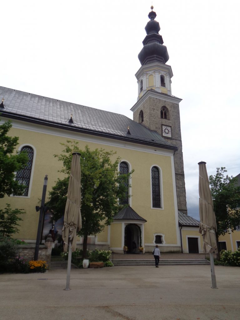 Tagesziel Thalgau erreicht. Dekanatskirche am Marktplatz.