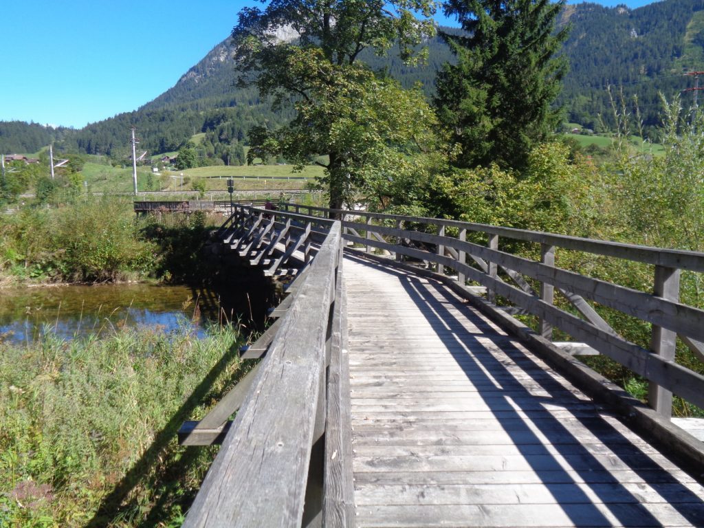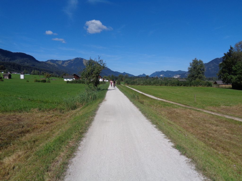 3. Tag: Ortswechsel: WoMo-Fahrt nach Freilassing. Kaum die deutsch-österreichische Grenze überschritten, beginnt der Salzkammergut-Radweg mit Bahntrassenradeln. Lange Zeit folgt die ehemalige Bahntrasse dem Alterbach.