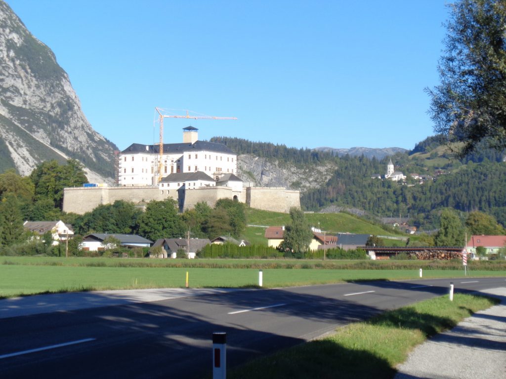 Bad Ischl. – Es regnet immer noch. Die Radtour Bad Ischl – Gmunden am Traunsee wird durch ein Bahntransfer ersetzt, denn es soll von dort noch weiter gehen nach Grünau im Almtal (im strömenden Regen). Akku in Bad Ischl während der Mittagspause nachgeladen. Übernachtung in Grünau. – 65 Tages-km.