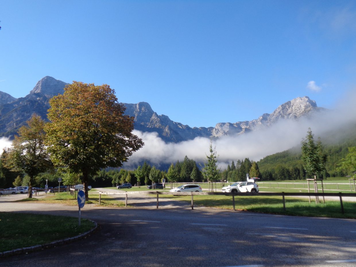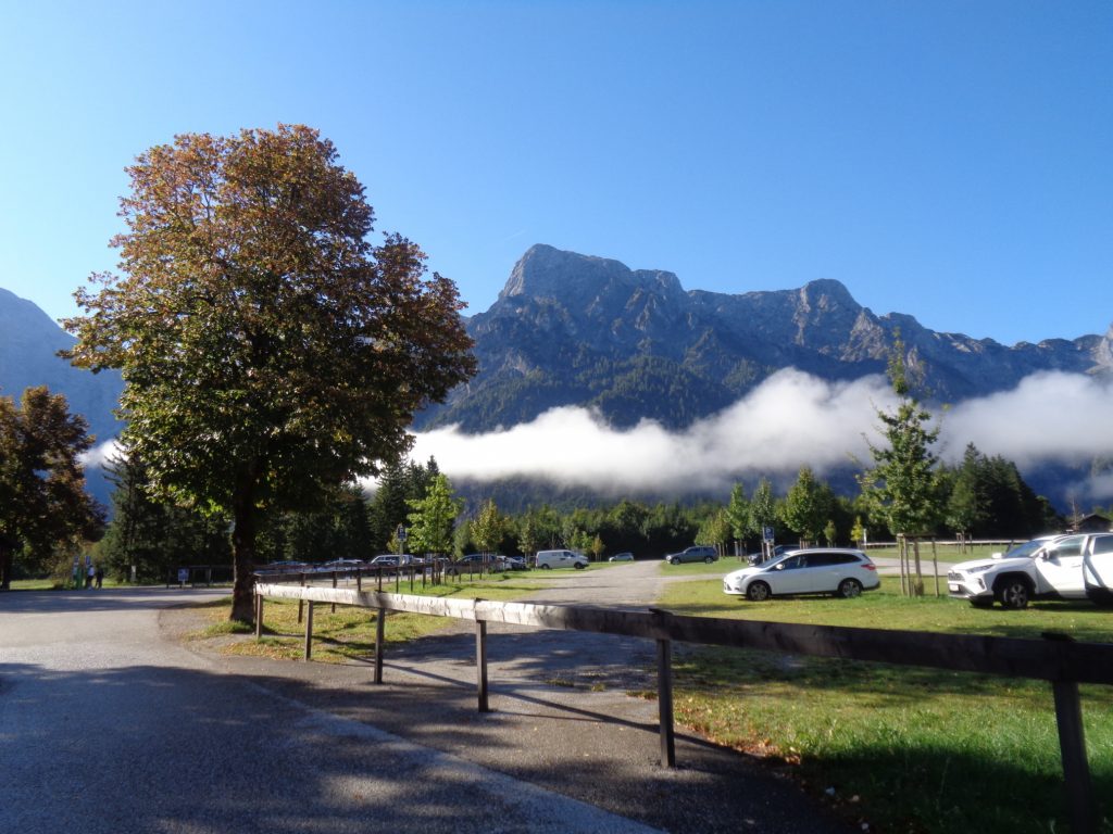 Der riesige Parkplatz am Ende des Almtals ist beliebter Ausgangspunkt für Wanderungen.