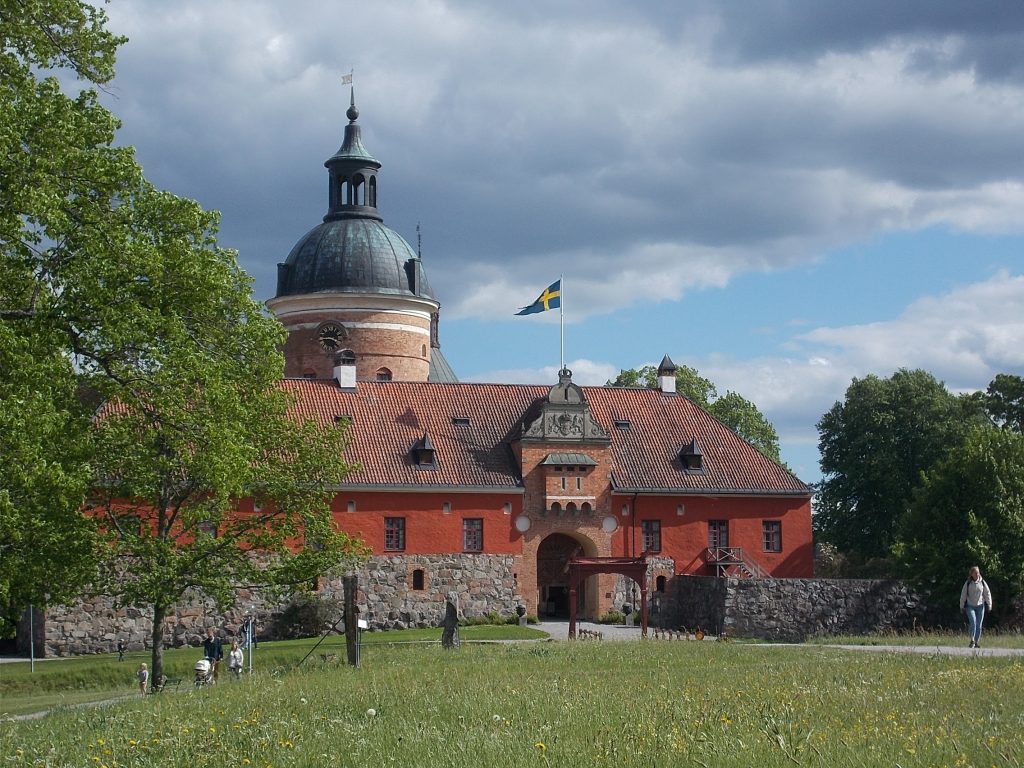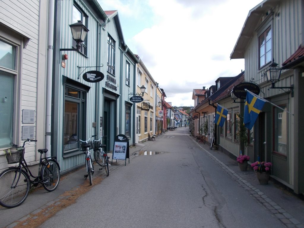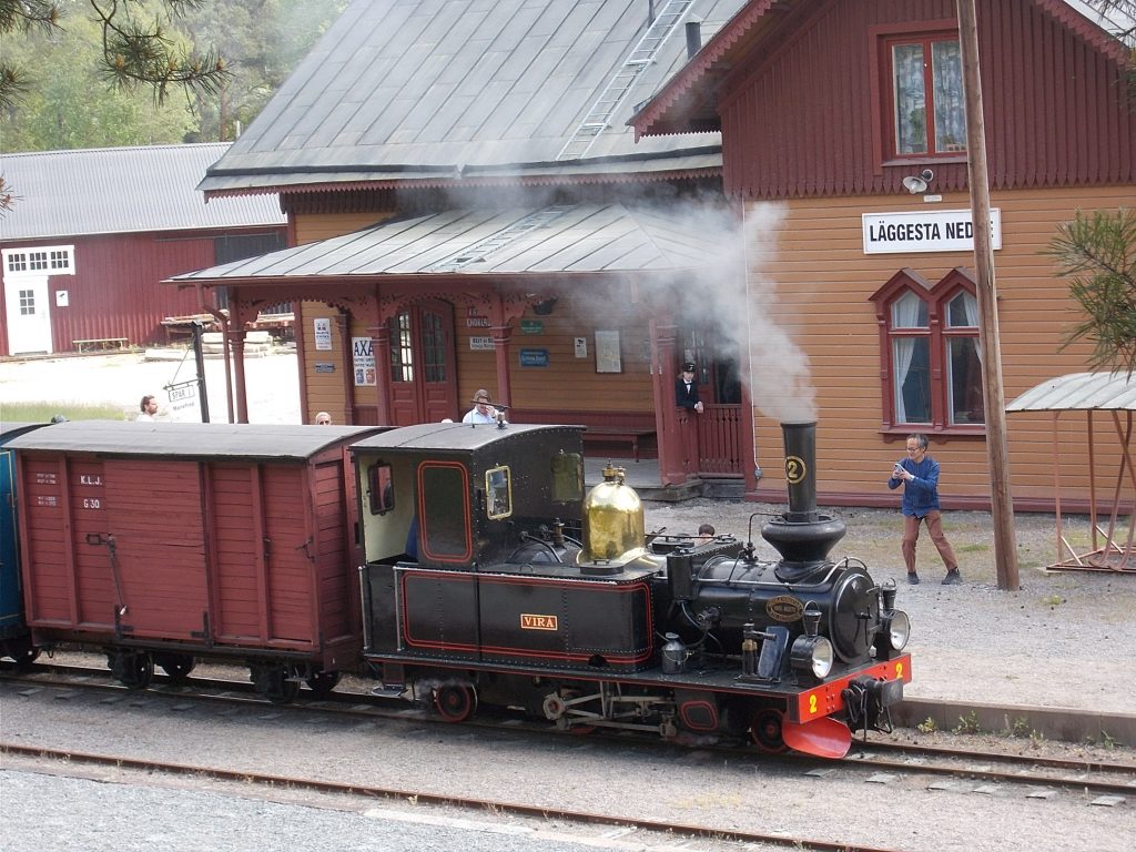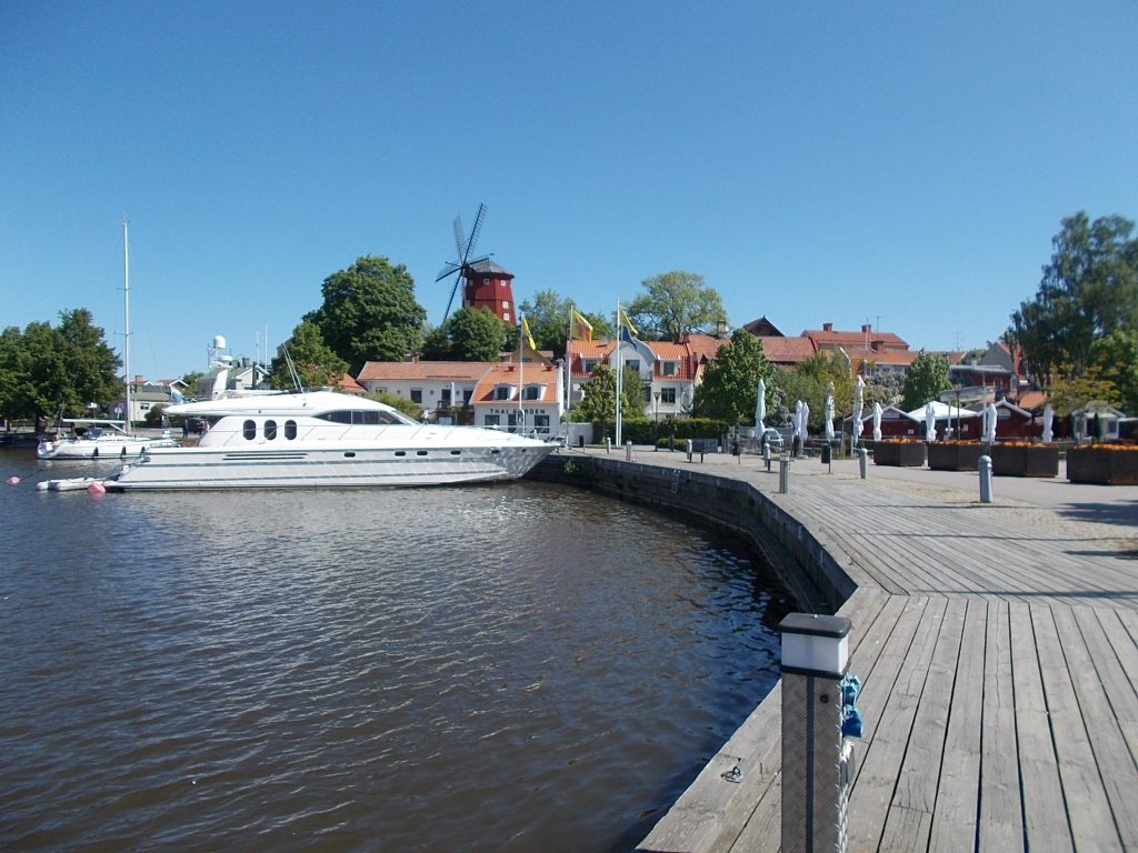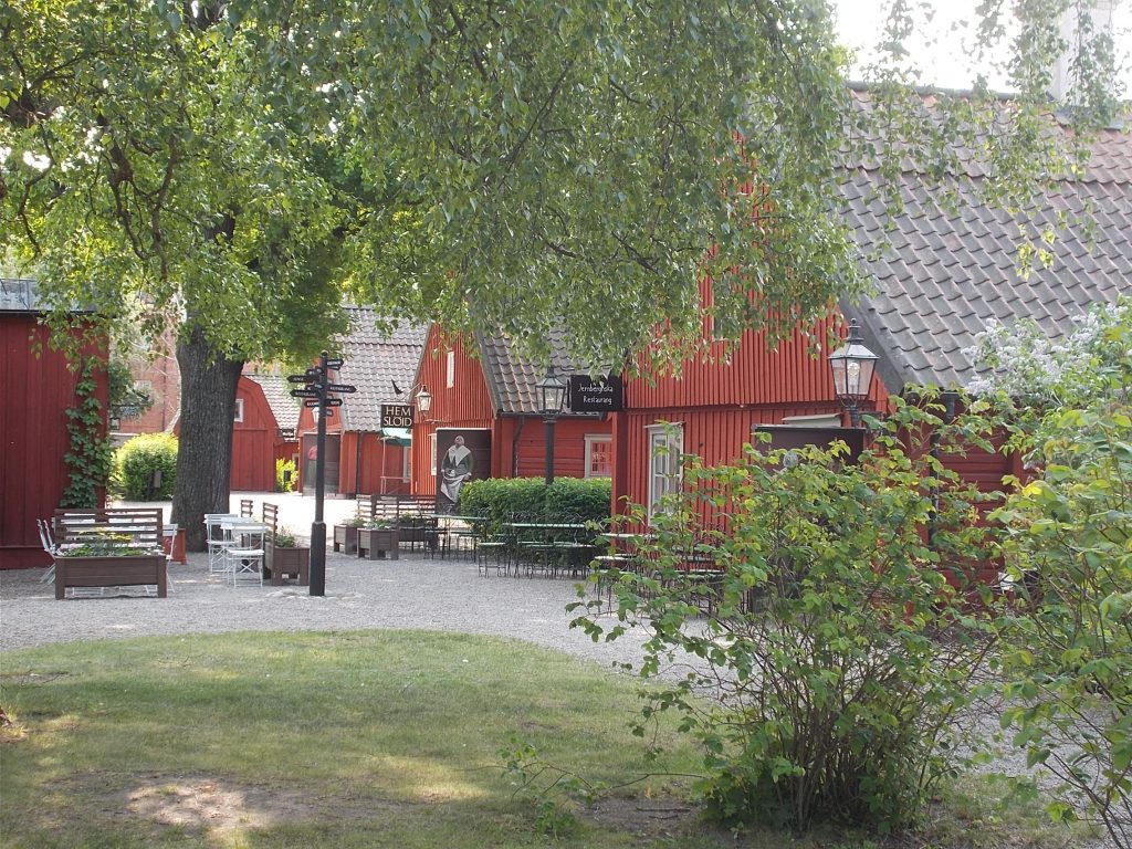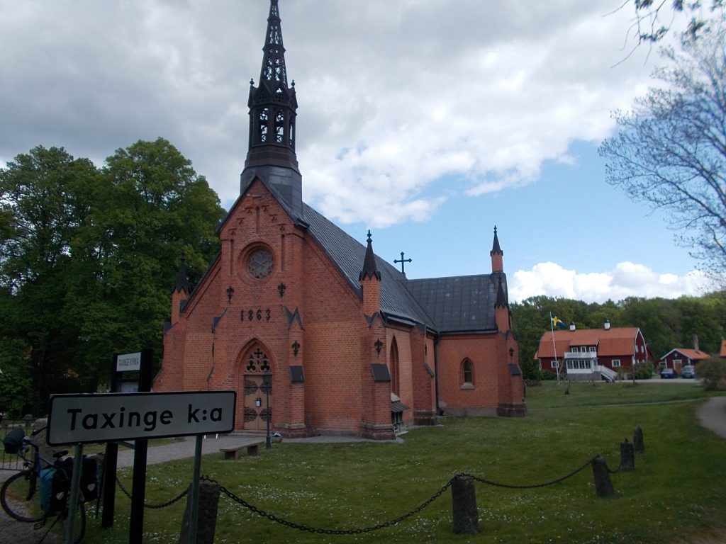 Tag 12: Der Tag beginnt mit der WoMo-Fahrt von Huskvarna nach Nyköping, vorbei an der Ruine Brahehus, oberhalb des Vättern gelegen.Ich möchte den Mälardalsleden, der in Södertälje beginnt und endet, mit der Göta-Kanal-Tour verbinden. Deshalb starte ich meine Tagestour in Nyköping in Richtung Norrköping, anfangs auf besten Radwegen entlang von Hauptstraßen, später auf guten, wenig befahrenen Nebenstraßen und unbefestigten Waldwegen.Kirche in Kvarsebo.Fähranlegestelle am See Bråviken im Ort Säter. Toilette in 1 km Entfernung – man darf es nicht eilig haben…Die Fähre kommt! Sie ist wie die allermeisten Fähren kostenlos.Blick zurück von der Fähre aus auf Sater.Innenaufnahme der Kirche in Östra Husby. Bahntransfer Norrköping – Nyköping. – 74 Tages-km. Übernachtung in der JH Nyköping.Die JH liegt in unmittelbarer Nähe zur Burg Nyköping. Das „Tingshus“ (=Gerichtsgebäude) in Nyköping ist aktuell das Amtsgericht.Jugendstilgebäude in Nyköping.Tag 13: Heutiges Tagesziel ist Södertälje. Die Regionalstraße ist als „Touristenstraße“ ausgeschildert und führt immer wieder an die zerklüftete Ostseeküste wie hier bei Tyresö.Wikinger-Invasion?Windmühle bei Hånö.Schloss Nynäs.Park am Schloss Nynäs.Warum einfach, wenn’s auch umständlich geht? Es wäre so einfach gewesen, die Trosa Lands Kyrka bei Vagnhärad zu erreichen, aber …Tullgarns Slott, wunderschön am flachen Ostseestrand gelegen.Tagesziel Södertälje ist erreicht. – 94 Tages-km. Ich übernachte zwar in Södertälje, fahre aber mit der Bahn zurück nach Nyköping, um mein WoMo zu holen, das ich am Bahnhof Södertälje Syd für die nächsten 9 Tage parke. Blick durch den gläsernen Windschutz des Bahnsteigs auf den Yachthafen Södertäljes am Himmerfjärden, einem Ostseefjord. Eine Schleuse in Södertälje schützt den Mälaren vor dem salzigen Ostseewasser. Tag 14: Heute (Pfingstsonntag) beginnt die Rundtour um den Mälaren, Schwedens drittgrößtem See. Im Bild die Syrisk Ortodoxa Katedral in Södertälje. Hoppla – was ist das? Bahntrassenradeln!!! War gar nicht eingeplant gewesen. Meine Freude über den Bahntrassenradweg ist groß.Es ist auch Platz für die Fußgänger vorhanden. Am Ende der ehemaligen Bahntrasse, bevor sie in die noch aktive Bahnstrecke mündet, …… eine Industrieruine. Nykvarn. Das sieht nach einem Herrenhaus aus, jedenfalls idyllisch gelegen. Taxinge liegt unmittelbar am Ufer des Mälaren. Neben dieser Kirche (verschlossen) …… gibt es das Schloss Taxinge.Dieses Linienschiff hat einen ganzen Schwung Besucher gebracht.Das Schloss liegt weiter rechts. (gezoomt)Ein Haltepunkt der Museumseisenbahn. Die Strecke verbindet Taxinge mit Mariefred. Blick auf Mariefred. War nicht geplant. Ich wollte einfach nicht mein schwer beladenes Rad den steilen Weg hinab an den See bringen. Also folgte ich einfach weiter dem bisherigen Weg auf halber Höhe über dem See. So gelangte ich erst an den (aktiven) Bahnhof Läggesta, dann an den Bahnhof Läggesta Nedre (nedre = unten, nieder) der Museumseisenbahn, die gerade mit einem Personenzug einfuhr. Läggesta Nedre ist der Endbahnhof, deshalb wird die Dampflok auf der von Hand bedienten Drehscheibe für die Rückfahrt gewendet. Tagesziel Mariefred ist erreicht. – 47 Tages-km. Schloss Gripsholm. Der nächste Tag ist ein Ruhetag. Ich habe also reichlich Zeit, das Schloss und die kleine Stadt zu erkunden.Das Schloss Gripsholm ist in Deutschland bekannt geworden durch den deutschen Journalisten und Schriftsteller Kurt Tucholsky und seinem Kurzroman „Schloss Gripsholm“, der zweimal verfilmt worden ist.Das Schloss wurde um 1540 von Gustav Wasa erbaut und ist seitdem -wie üblich – mehrere Male um- und ausgebaut worden.Seit 1822 befindet sich die Portraitsammlung des schwedischen Staates im Schloss.Die Möbel und das kunsthandwerkliche Inventar werden von den Königlichen Kunstsammlungen verwaltet. Und nun zum Stadtrundgang.Das Rathaus am Marktplatz.Die Einkaufsstraße.Kirche von Mariefred. Für eine Innenbesichtigung zu spät gekommen.Bahnhof der Museumsbahn.Der Betriebshof der Museumsbahn.Das Linienverzeichnis der Museumsbahn: „Zug nach Läggesta Nedere und Taxinge-Näsby.“ Zu finden an der Anlegestelle der Linienschifffahrt, also im Hafen. Tag 15: Am nächsten Radeltag Zwischenstation in Strängnås. Domkyrka.Auch hier wieder eine Ecke für die Kinder. Die „Gläubigen“ auf den Stühlen sind Stofftiere. Windmühle am Hafen.Vansö kyrka.Das gibt ‚was her…Blick von der Brücke über den Björsundet.Ich finde jetzt immer häufiger Runensteine entlang meines Wegs.Tagesziel Eskilstuna ist erreicht. – 71 Tages-km.Tag 16: Bevor ich Eskilstuna verlasse, eine Runde durch die Stadt. Rathaus mit Brunnen.Alte Siedlung Rademachersmedjorna – ein Freilichtmuseum in Eskilstuna.Rademachersmedjorna ist eine der am besten erhaltenen Siedlungen des Landes aus dem 17. Jahrhundert! Hier sind eine Reihe gut erhaltener Häuser aus Schwedens erster Schmiedefabrik aus den 1650er Jahren. Heute gibt es hier kleine Betriebe, die traditionelles Handwerk betreiben. Mehrere Ausstellungen sind das ganze Jahr über rund um die Uhr geöffnet sind. Eine von Hand betriebene Schleuse.Klosters kyrka (Eskilstuna)Torshälla ist ein Stadtteil der 70.000 Einwohner-Stadt Eskilstuna.Nördlich von Tumbo ein Grabfeld (Grabhügel).Ab hier nehme ich eine Abkürzung nach Västerås. Der Mälardalsleden führt ab hier links herum um die Spitze des Sees bei Köping. Die Klappbrücke vereint Radweg, Fahrstraße und Eisenbahnlinie.Ankunft in Västerås. Domkyrka.Västerås. – 52 Tages-km.Tag 17: Erster Halt Anundshög: 56 Treffenstufen führen auf dieses Hügelgrab, das das größte Schwedens ist.Von oben hat man einen herrlichen Überblick über mehrere Steinsetzungen (eine Anordnung größerer Steine). Sie stammen aus der Wikingerzeit (vermutlich 6. Jh.).Tillinge kyrka.Mittagsrast in Enköping. Vårfrukyrkan.Härkeberga Kyrka. Der Glockenturm steht weiter en