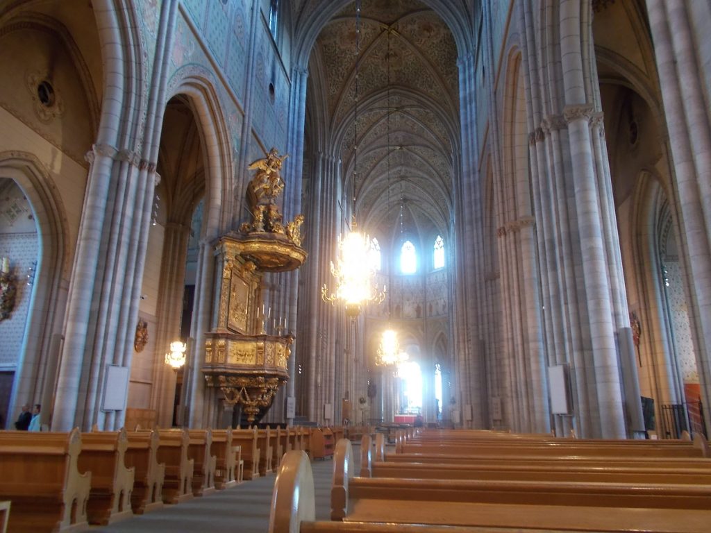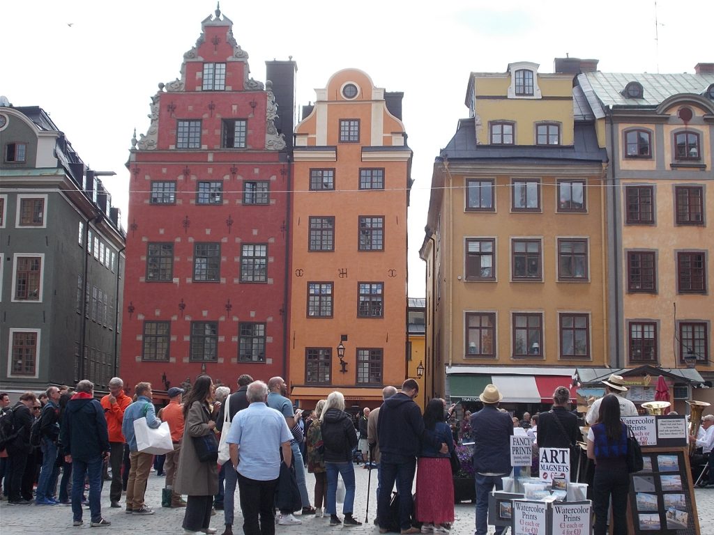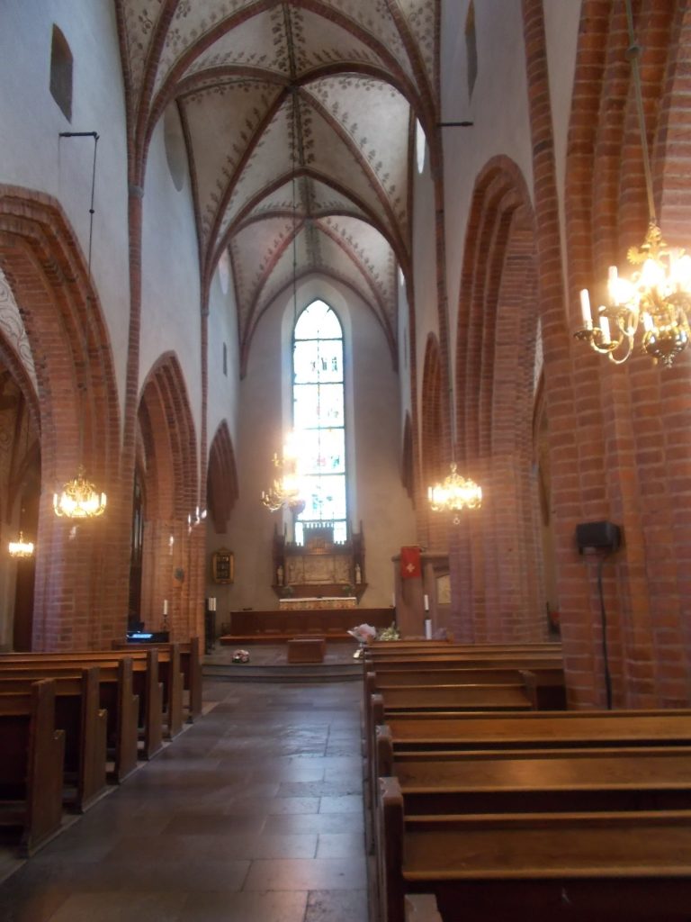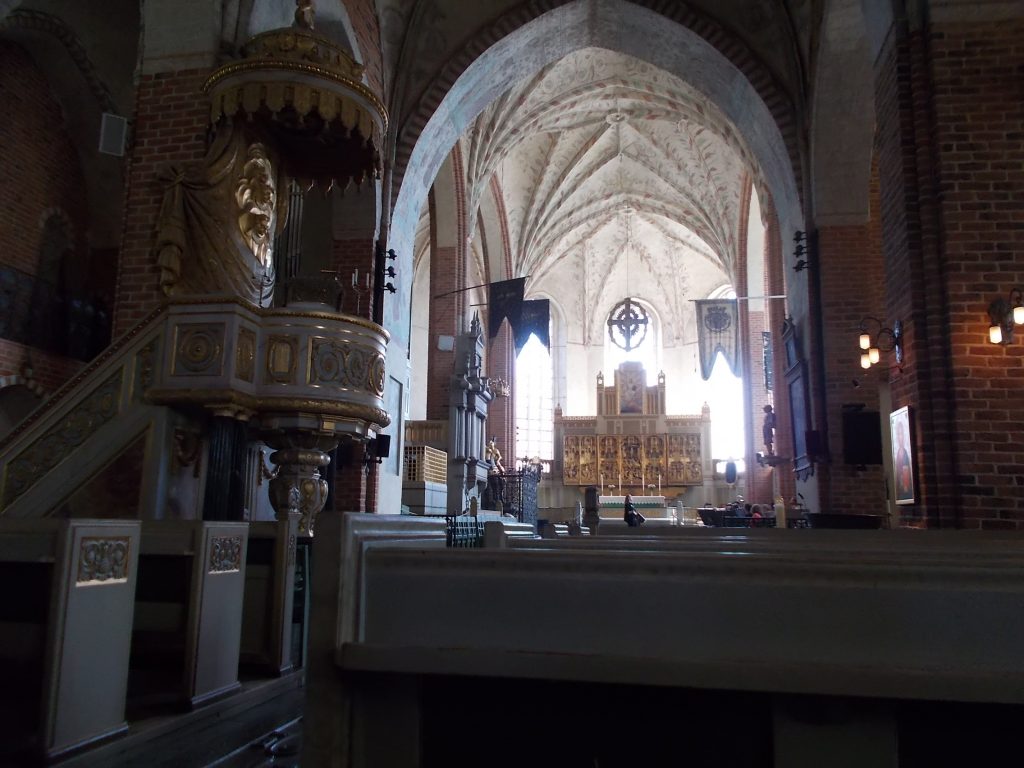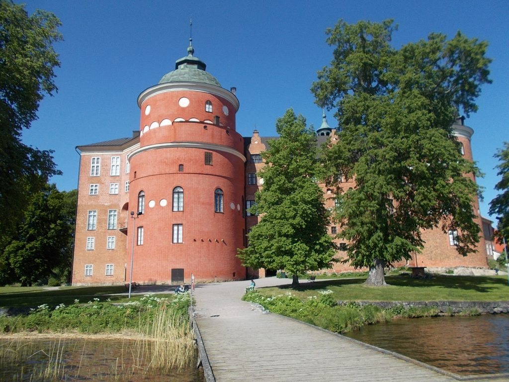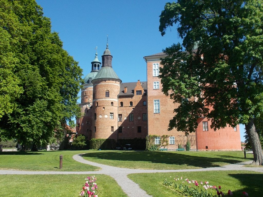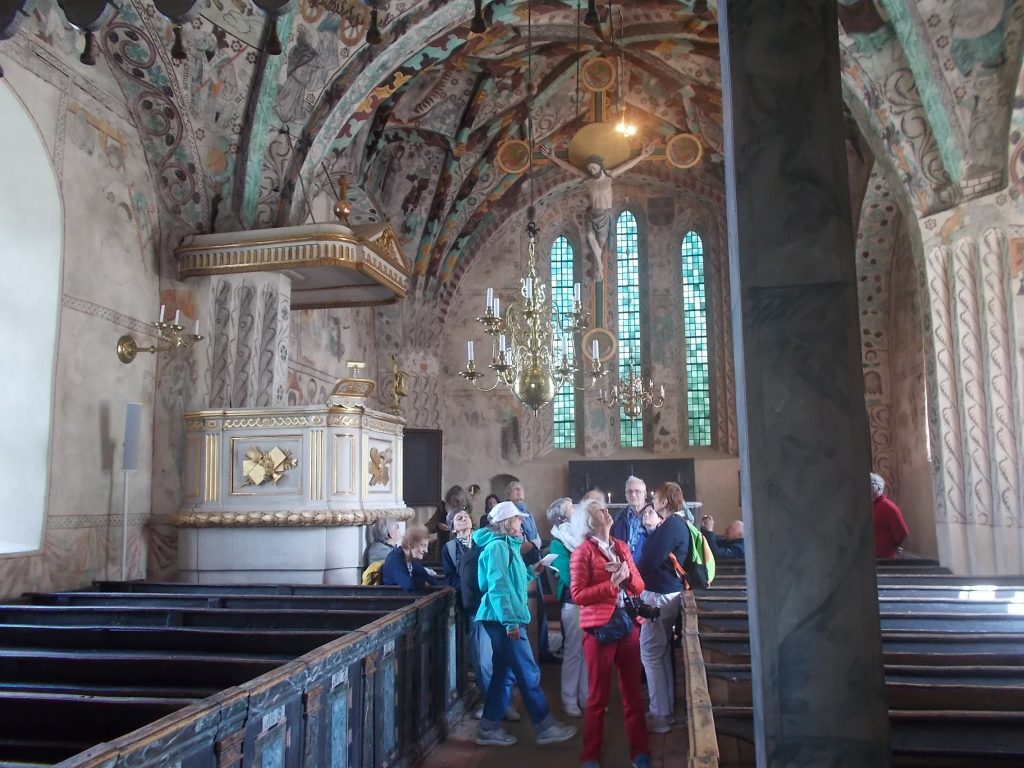 Tag 12: Der Tag beginnt mit der WoMo-Fahrt von Huskvarna nach Nyköping, vorbei an der Ruine Brahehus, oberhalb des Vättern gelegen.Ich möchte den Mälardalsleden, der in Södertälje beginnt und endet, mit der Göta-Kanal-Tour verbinden. Deshalb starte ich meine Tagestour in Nyköping in Richtung Norrköping, anfangs auf besten Radwegen entlang von Hauptstraßen, später auf guten, wenig befahrenen Nebenstraßen und unbefestigten Waldwegen.Kirche in Kvarsebo.Fähranlegestelle am See Bråviken im Ort Säter. Toilette in 1 km Entfernung – man darf es nicht eilig haben…Die Fähre kommt! Sie ist wie die allermeisten Fähren kostenlos.Blick zurück von der Fähre aus auf Sater.Innenaufnahme der Kirche in Östra Husby. Bahntransfer Norrköping – Nyköping. – 74 Tages-km. Übernachtung in der JH Nyköping.Die JH liegt in unmittelbarer Nähe zur Burg Nyköping. Das „Tingshus“ (=Gerichtsgebäude) in Nyköping ist aktuell das Amtsgericht.Jugendstilgebäude in Nyköping.Tag 13: Heutiges Tagesziel ist Södertälje. Die Regionalstraße ist als „Touristenstraße“ ausgeschildert und führt immer wieder an die zerklüftete Ostseeküste wie hier bei Tyresö.Wikinger-Invasion?Windmühle bei Hånö.Schloss Nynäs.Park am Schloss Nynäs.Warum einfach, wenn’s auch umständlich geht? Es wäre so einfach gewesen, die Trosa Lands Kyrka bei Vagnhärad zu erreichen, aber …Tullgarns Slott, wunderschön am flachen Ostseestrand gelegen.Tagesziel Södertälje ist erreicht. – 94 Tages-km. Ich übernachte zwar in Södertälje, fahre aber mit der Bahn zurück nach Nyköping, um mein WoMo zu holen, das ich am Bahnhof Södertälje Syd für die nächsten 9 Tage parke. Blick durch den gläsernen Windschutz des Bahnsteigs auf den Yachthafen Södertäljes am Himmerfjärden, einem Ostseefjord. Eine Schleuse in Södertälje schützt den Mälaren vor dem salzigen Ostseewasser. Tag 14: Heute (Pfingstsonntag) beginnt die Rundtour um den Mälaren, Schwedens drittgrößtem See. Im Bild die Syrisk Ortodoxa Katedral in Södertälje. Hoppla – was ist das? Bahntrassenradeln!!! War gar nicht eingeplant gewesen. Meine Freude über den Bahntrassenradweg ist groß.Es ist auch Platz für die Fußgänger vorhanden. Am Ende der ehemaligen Bahntrasse, bevor sie in die noch aktive Bahnstrecke mündet, …… eine Industrieruine. Nykvarn. Das sieht nach einem Herrenhaus aus, jedenfalls idyllisch gelegen. Taxinge liegt unmittelbar am Ufer des Mälaren. Neben dieser Kirche (verschlossen) …… gibt es das Schloss Taxinge.Dieses Linienschiff hat einen ganzen Schwung Besucher gebracht.Das Schloss liegt weiter rechts. (gezoomt)Ein Haltepunkt der Museumseisenbahn. Die Strecke verbindet Taxinge mit Mariefred. Blick auf Mariefred. War nicht geplant. Ich wollte einfach nicht mein schwer beladenes Rad den steilen Weg hinab an den See bringen. Also folgte ich einfach weiter dem bisherigen Weg auf halber Höhe über dem See. So gelangte ich erst an den (aktiven) Bahnhof Läggesta, dann an den Bahnhof Läggesta Nedre (nedre = unten, nieder) der Museumseisenbahn, die gerade mit einem Personenzug einfuhr. Läggesta Nedre ist der Endbahnhof, deshalb wird die Dampflok auf der von Hand bedienten Drehscheibe für die Rückfahrt gewendet. Tagesziel Mariefred ist erreicht. – 47 Tages-km. Schloss Gripsholm. Der nächste Tag ist ein Ruhetag. Ich habe also reichlich Zeit, das Schloss und die kleine Stadt zu erkunden.Das Schloss Gripsholm ist in Deutschland bekannt geworden durch den deutschen Journalisten und Schriftsteller Kurt Tucholsky und seinem Kurzroman „Schloss Gripsholm“, der zweimal verfilmt worden ist.Das Schloss wurde um 1540 von Gustav Wasa erbaut und ist seitdem -wie üblich – mehrere Male um- und ausgebaut worden.Seit 1822 befindet sich die Portraitsammlung des schwedischen Staates im Schloss.Die Möbel und das kunsthandwerkliche Inventar werden von den Königlichen Kunstsammlungen verwaltet. Und nun zum Stadtrundgang.Das Rathaus am Marktplatz.Die Einkaufsstraße.Kirche von Mariefred. Für eine Innenbesichtigung zu spät gekommen.Bahnhof der Museumsbahn.Der Betriebshof der Museumsbahn.Das Linienverzeichnis der Museumsbahn: „Zug nach Läggesta Nedere und Taxinge-Näsby.“ Zu finden an der Anlegestelle der Linienschifffahrt, also im Hafen. Tag 15: Am nächsten Radeltag Zwischenstation in Strängnås. Domkyrka.Auch hier wieder eine Ecke für die Kinder. Die „Gläubigen“ auf den Stühlen sind Stofftiere. Windmühle am Hafen.Vansö kyrka.Das gibt ‚was her…Blick von der Brücke über den Björsundet.Ich finde jetzt immer häufiger Runensteine entlang meines Wegs.Tagesziel Eskilstuna ist erreicht. – 71 Tages-km.Tag 16: Bevor ich Eskilstuna verlasse, eine Runde durch die Stadt. Rathaus mit Brunnen.Alte Siedlung Rademachersmedjorna – ein Freilichtmuseum in Eskilstuna.Rademachersmedjorna ist eine der am besten erhaltenen Siedlungen des Landes aus dem 17. Jahrhundert! Hier sind eine Reihe gut erhaltener Häuser aus Schwedens erster Schmiedefabrik aus den 1650er Jahren. Heute gibt es hier kleine Betriebe, die traditionelles Handwerk betreiben. Mehrere Ausstellungen sind das ganze Jahr über rund um die Uhr geöffnet sind. Eine von Hand betriebene Schleuse.Klosters kyrka (Eskilstuna)Torshälla ist ein Stadtteil der 70.000 Einwohner-Stadt Eskilstuna.Nördlich von Tumbo ein Grabfeld (Grabhügel).Ab hier nehme ich eine Abkürzung nach Västerås. Der Mälardalsleden führt ab hier links herum um die Spitze des Sees bei Köping. Die Klappbrücke vereint Radweg, Fahrstraße und Eisenbahnlinie.Ankunft in Västerås. Domkyrka.Västerås. – 52 Tages-km.Tag 17: Erster Halt Anundshög: 56 Treffenstufen führen auf dieses Hügelgrab, das das größte Schwedens ist.Von oben hat man einen herrlichen Überblick über mehrere Steinsetzungen (eine Anordnung größerer Steine). Sie stammen aus der Wikingerzeit (vermutlich 6. Jh.).Tillinge kyrka.Mittagsrast in Enköping. Vårfrukyrkan.Härkeberga Kyrka. Der Glockenturm steht weiter en
